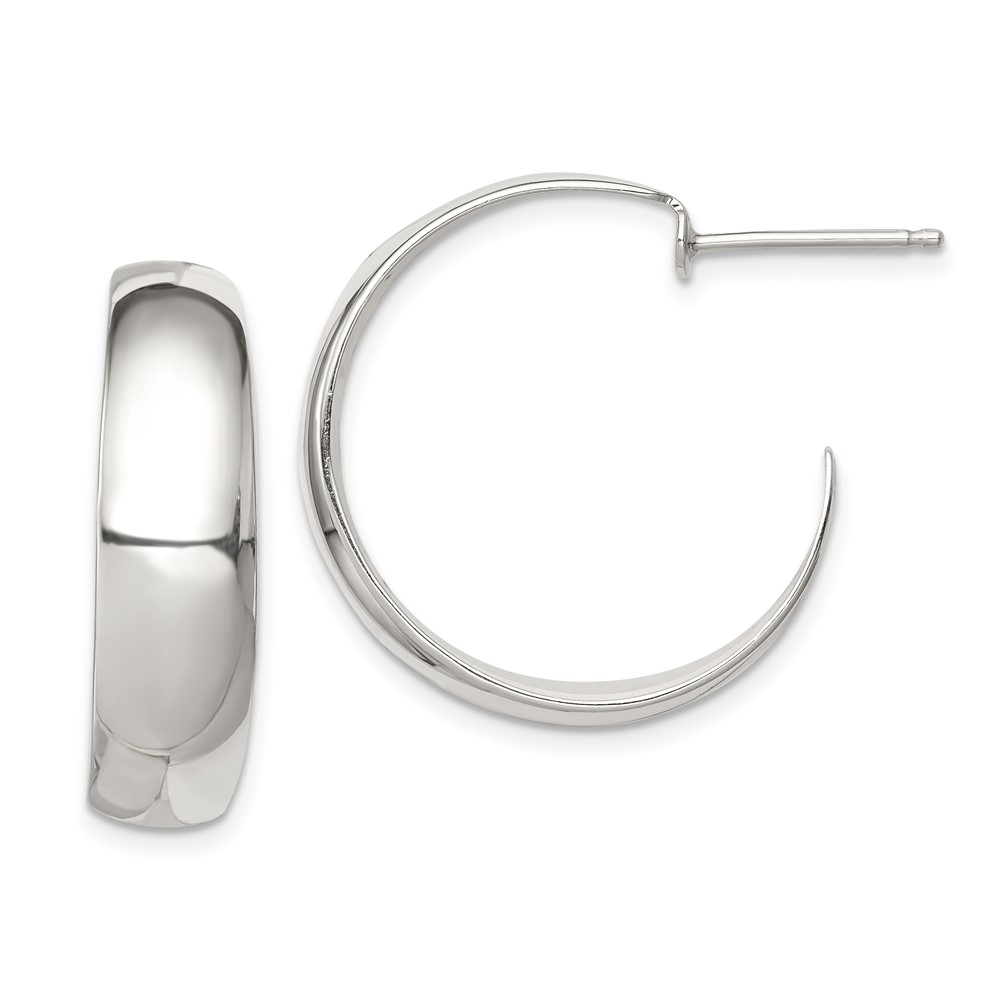 Sterling Silver Rhodium-plated Fancy J-Hoop Post Earrings