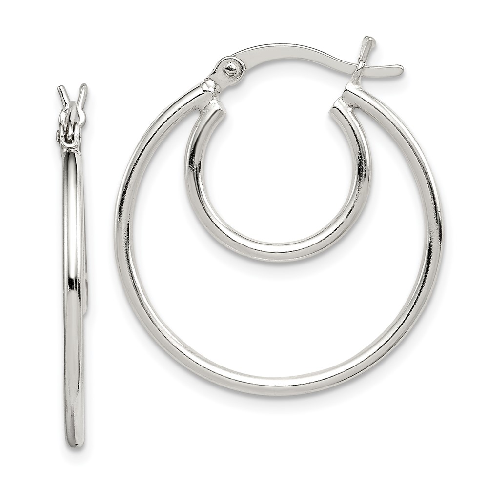 Sterling Silver Polished 2mm Double Hoop Earrings