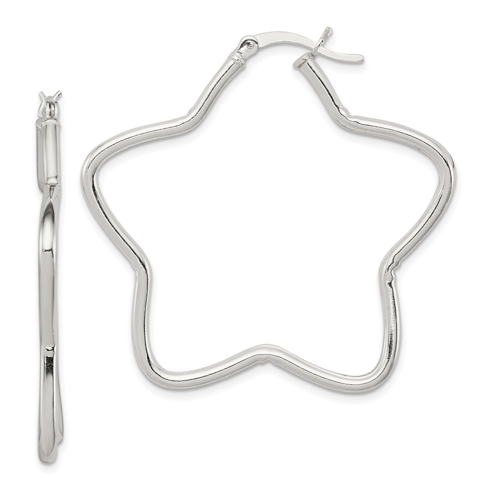 Sterling Silver Rhodium-Plated 2mm Star Hoop Earrings