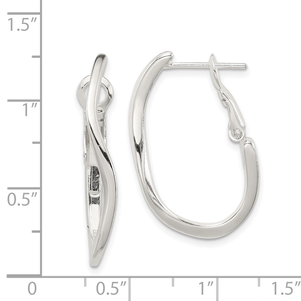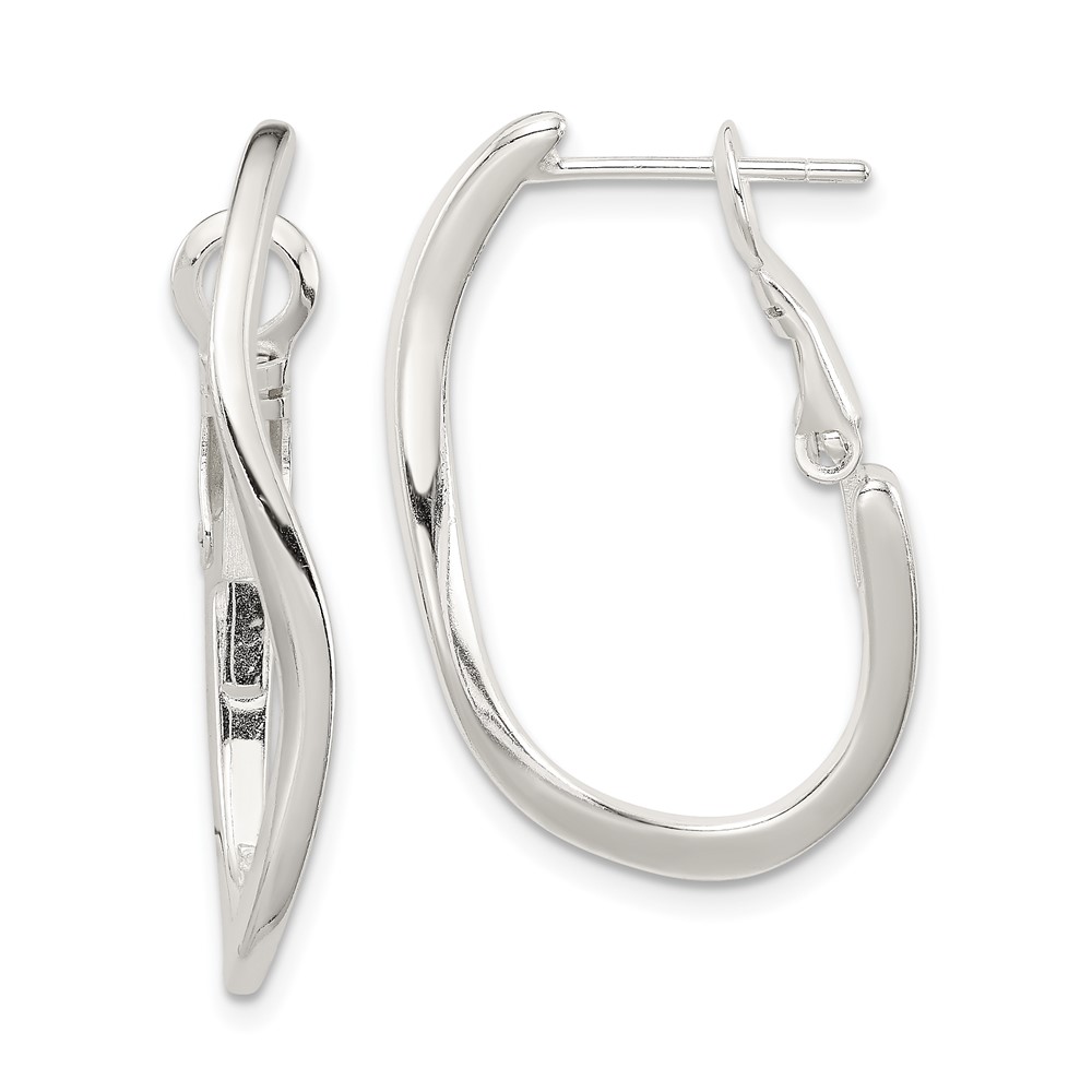 Sterling Silver Polished Wavy Omega Back Oval Hoop Earrings