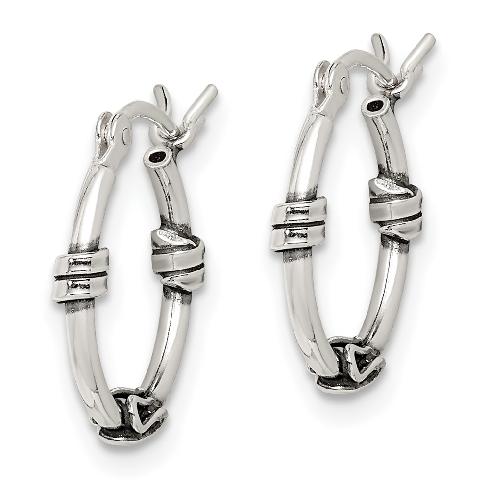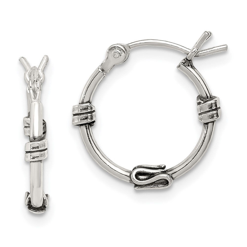 Sterling Silver Antiqued Fancy Hoop Earrings