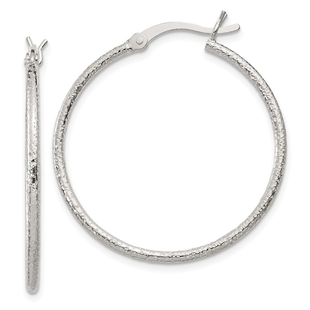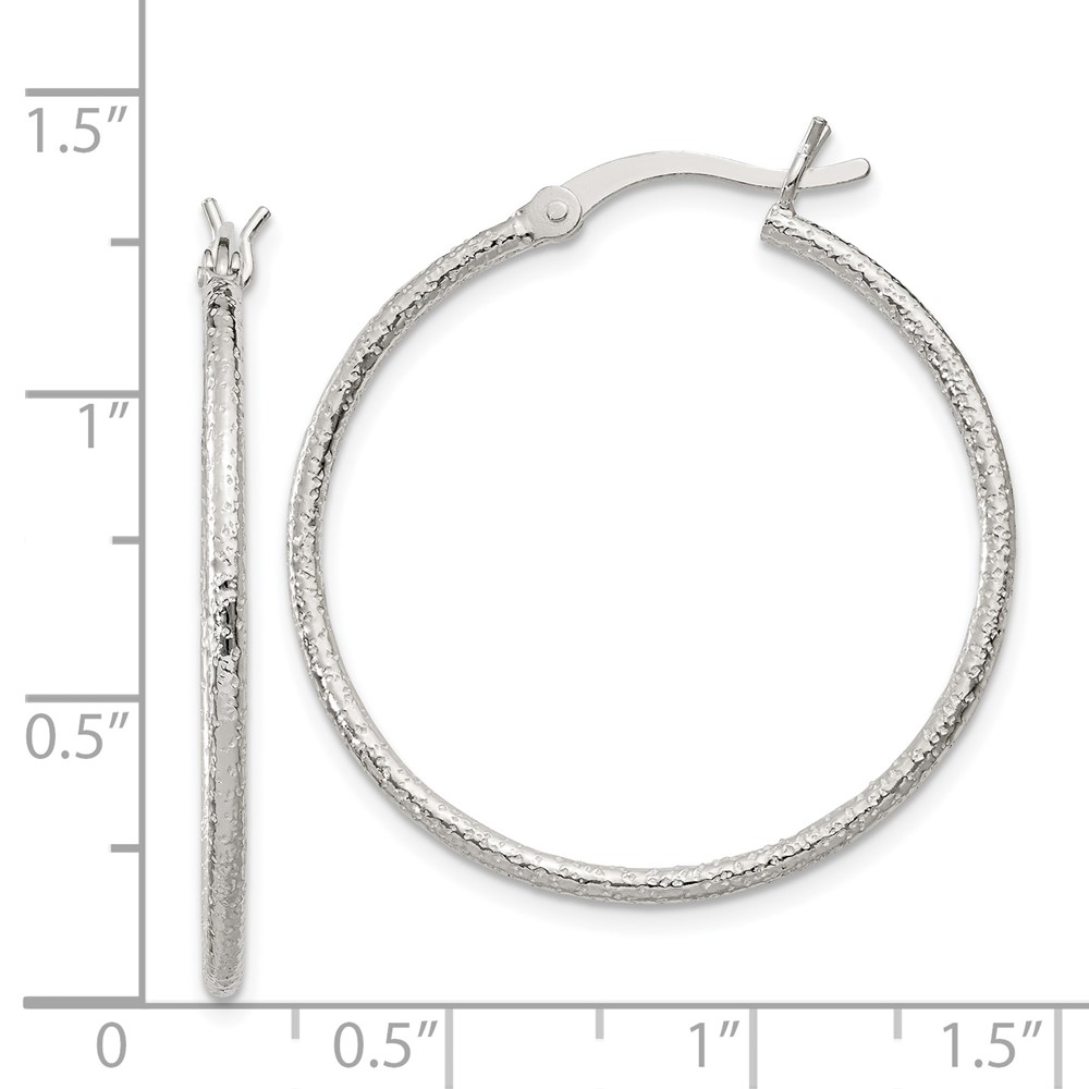 Sterling Silver Textured 2x30mm Hoop Earrings
