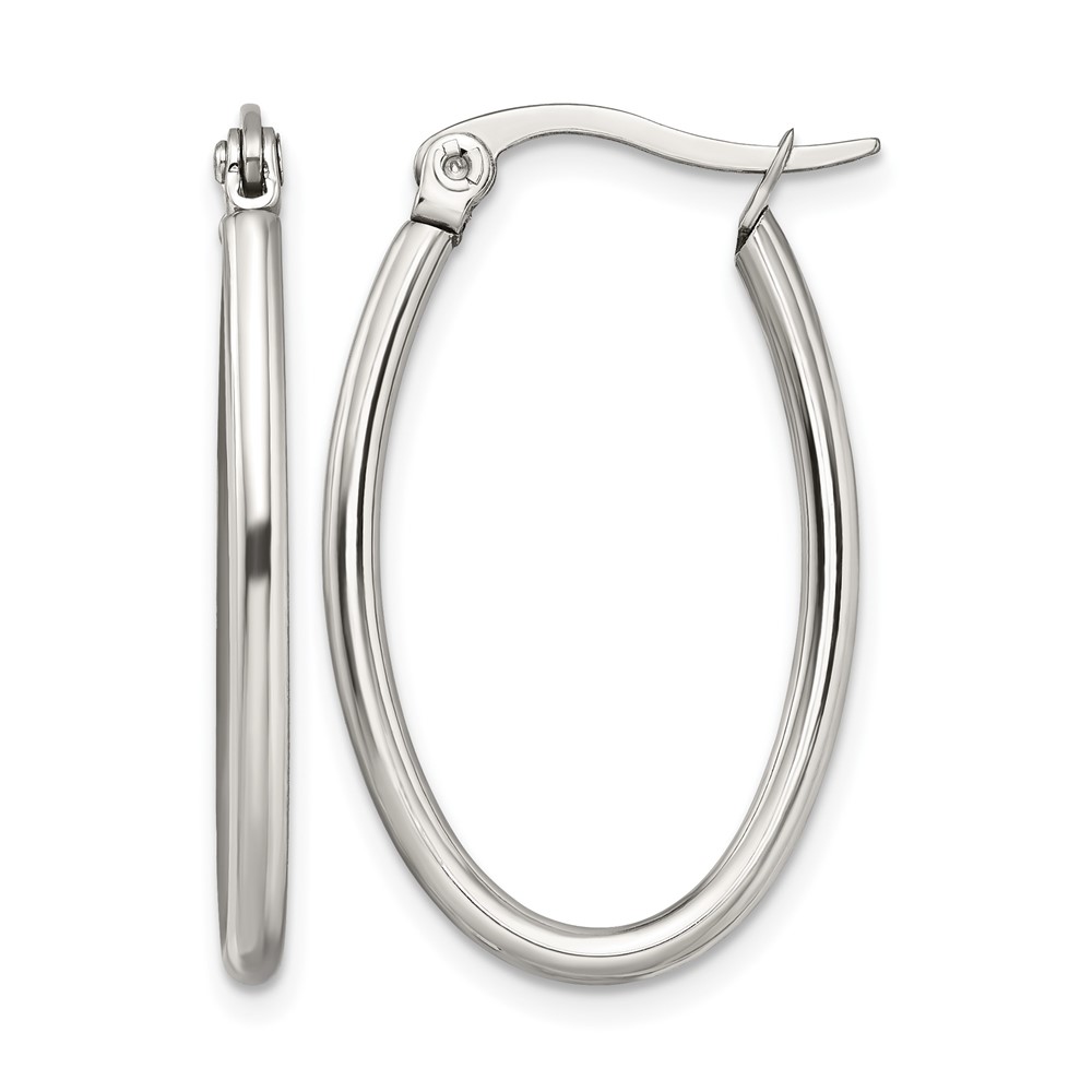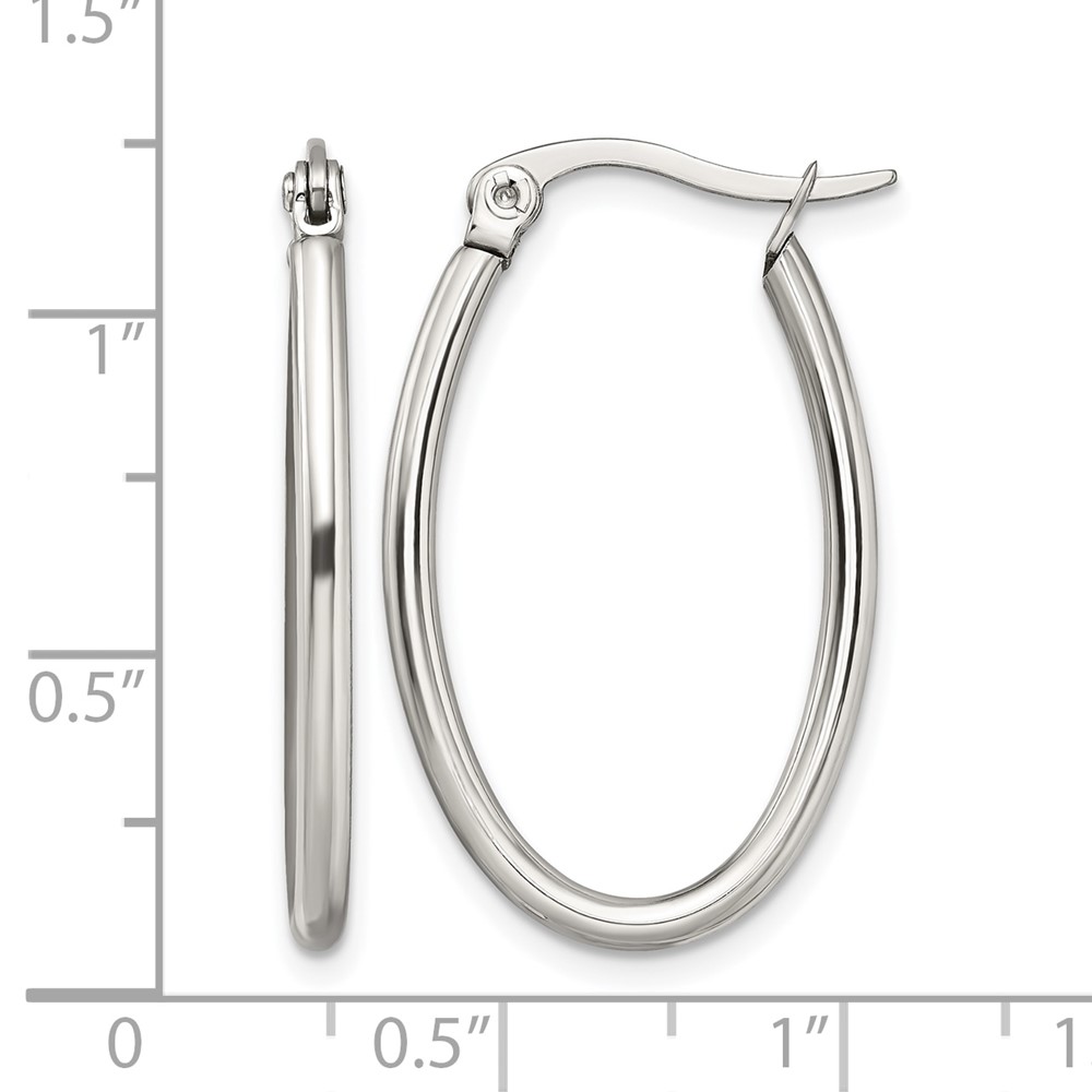 Chisel Stainless Steel Polished 18mm Diameter 2mm Oval Hoop Earrings