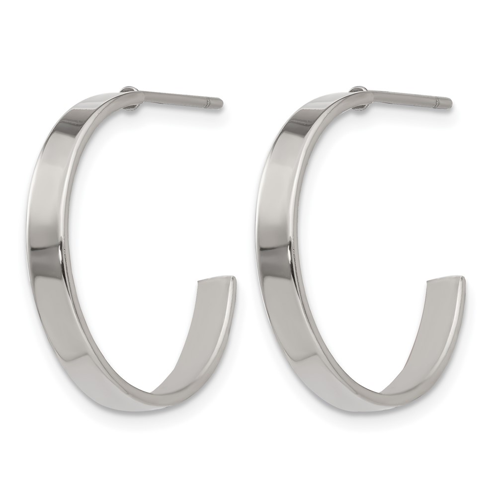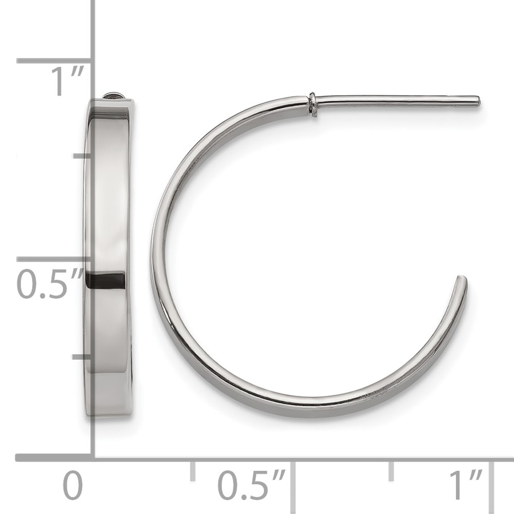 Chisel Stainless Steel Polished 20mm Diameter 3mm J Hoop Post Earrings