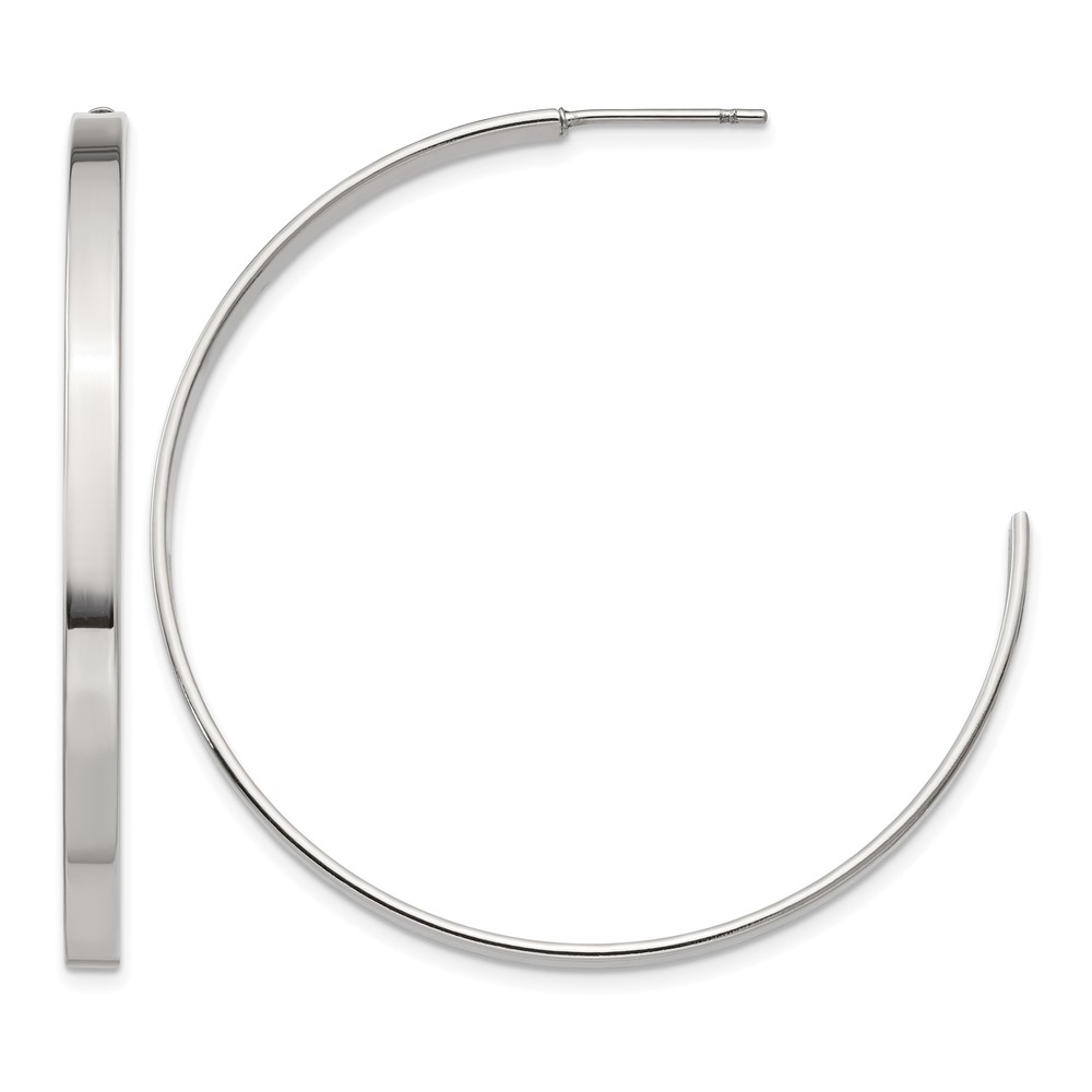 Chisel Stainless Steel Polished 44mm Diameter 3mm J Hoop Post Earrings