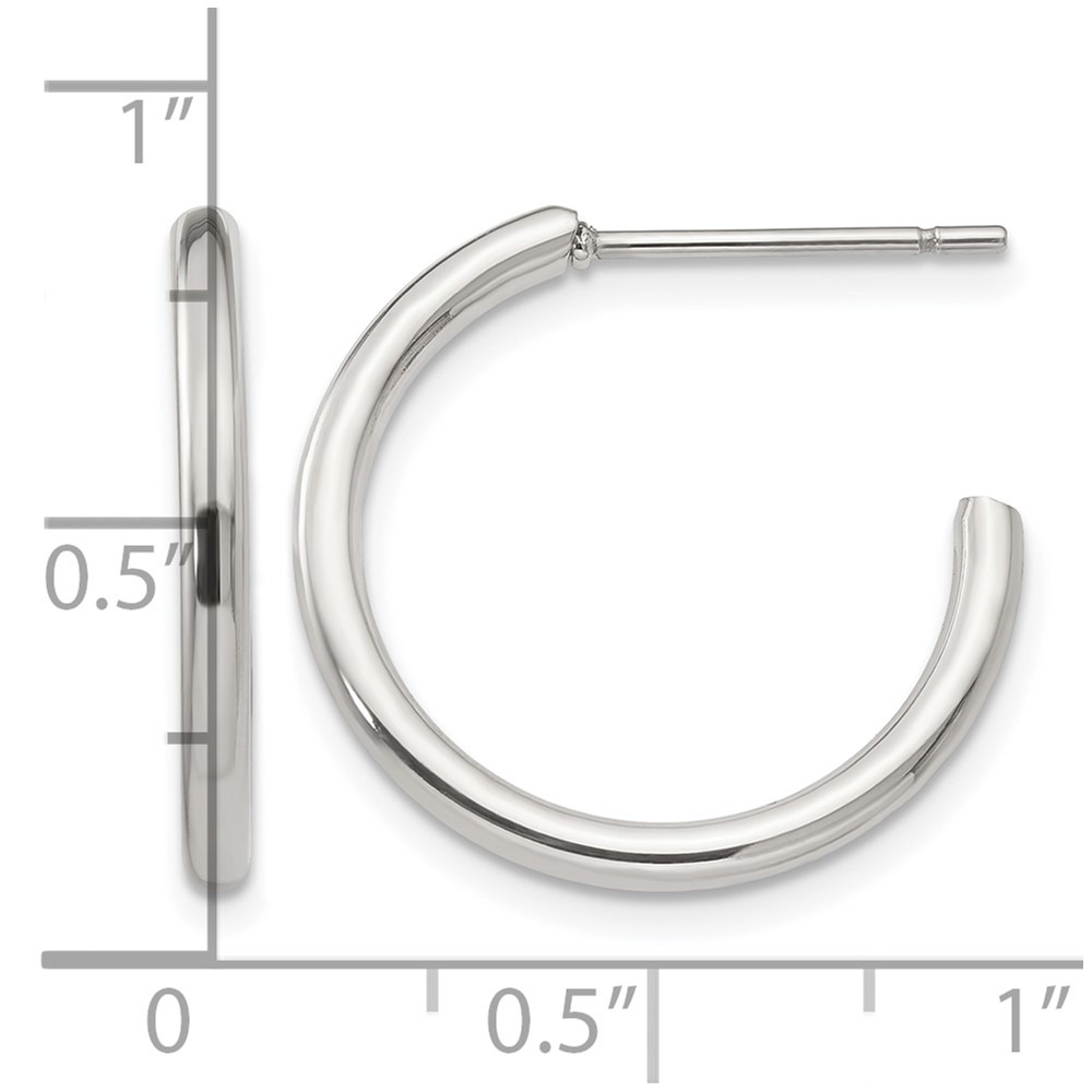 Chisel Stainless Steel Polished 19mm Diameter 2mm J Hoop Post Earrings