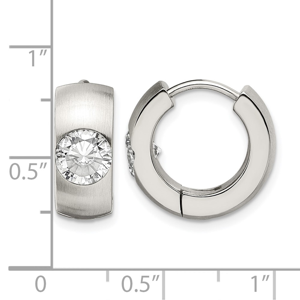 Chisel Stainless Steel Brushed and Polished with CZ Round 7mm Hinged Hoop Earrings