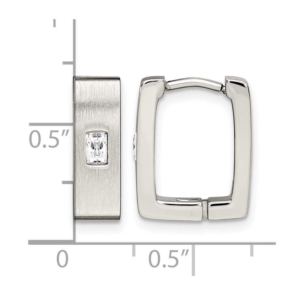Chisel Stainless Steel Brushed and Polished with CZ 5mm Square Hinged Earrings