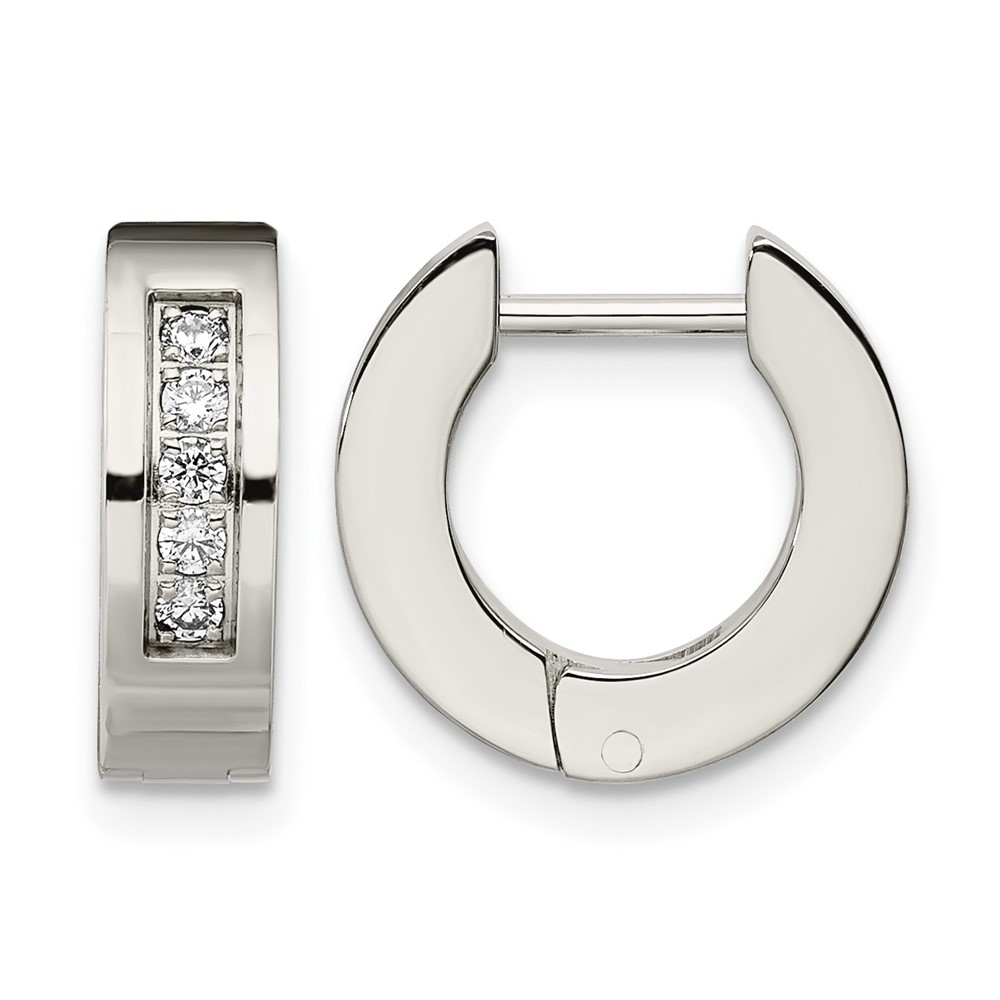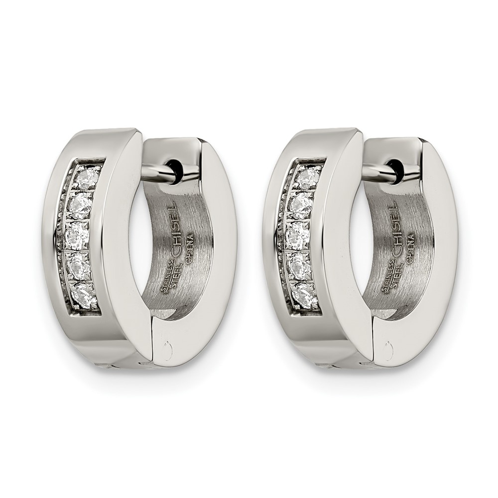 Chisel Stainless Steel Polished with CZ 4mm Hinged Hoop Earrings