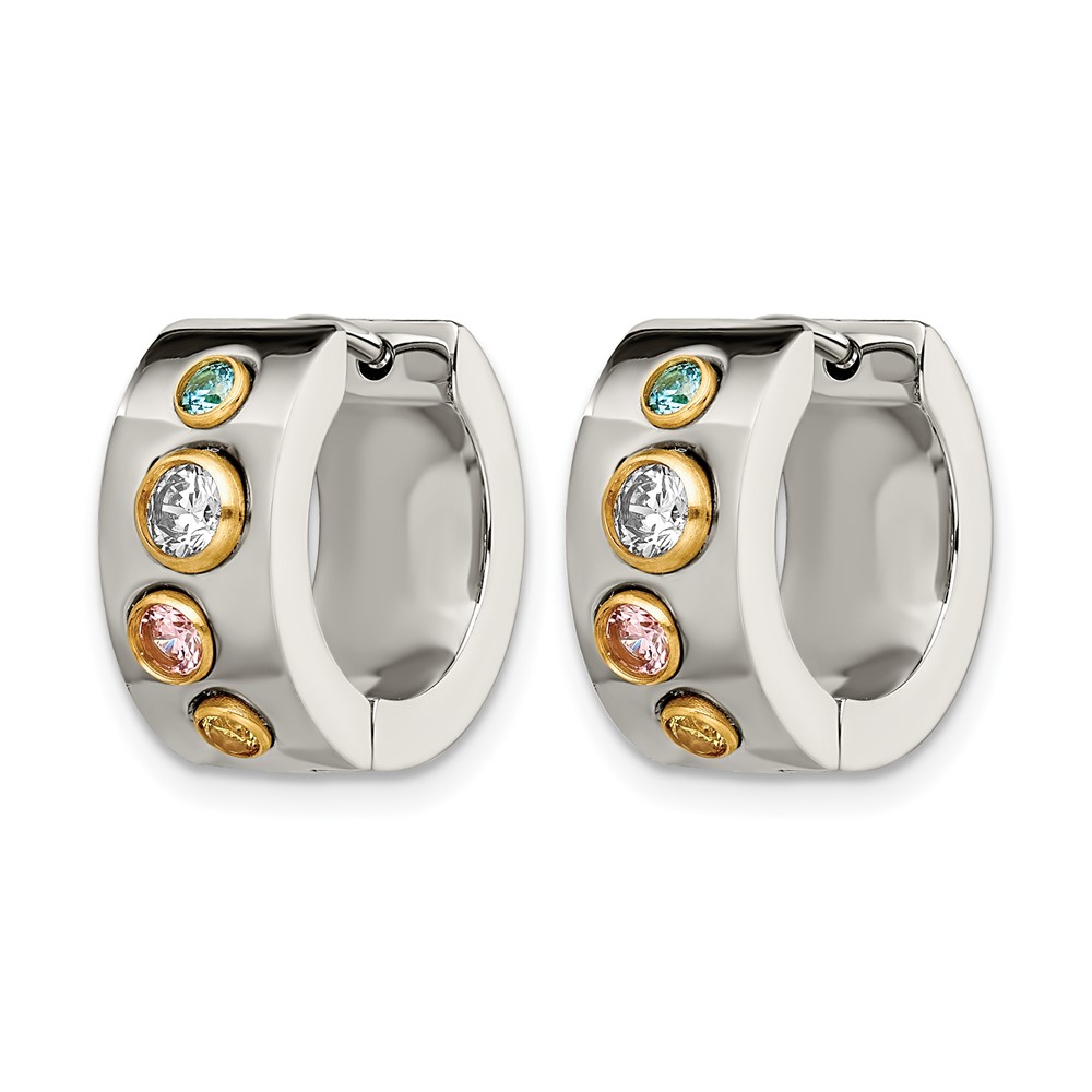 Chisel Stainless Steel Polished Yellow IP-plated with Multicolor CZ 7mm Hinged Hoop Earrings
