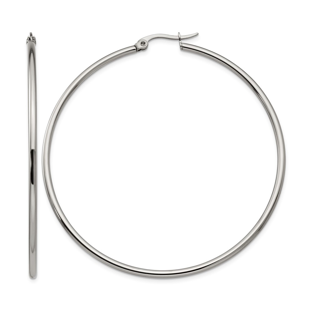 Chisel Stainless Steel Polished 60mm Diameter 2mm Hoop Earrings