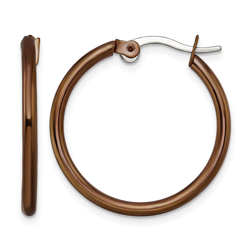 Chisel Stainless Steel Polished Brown IP-plated 26mm Diameter 2mm Hoop Earrings
