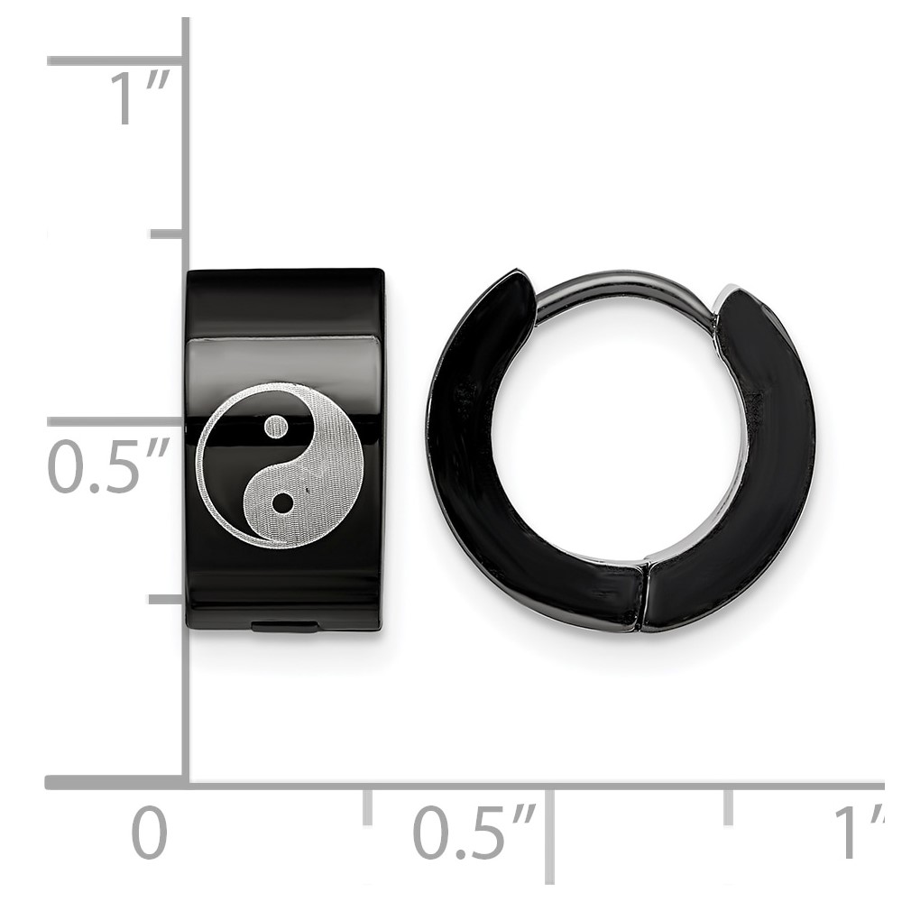 Chisel Stainless Steel Polished Black IP-plated 7mm Hinged Hoop w/Yin Yang Earrings