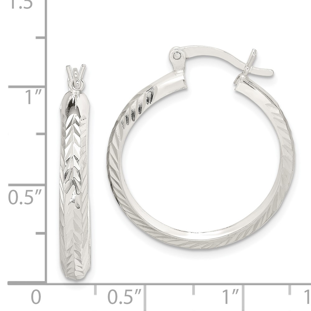 Sterling Silver Polished & Diamond-cut 4mm Round Hoop Earrings