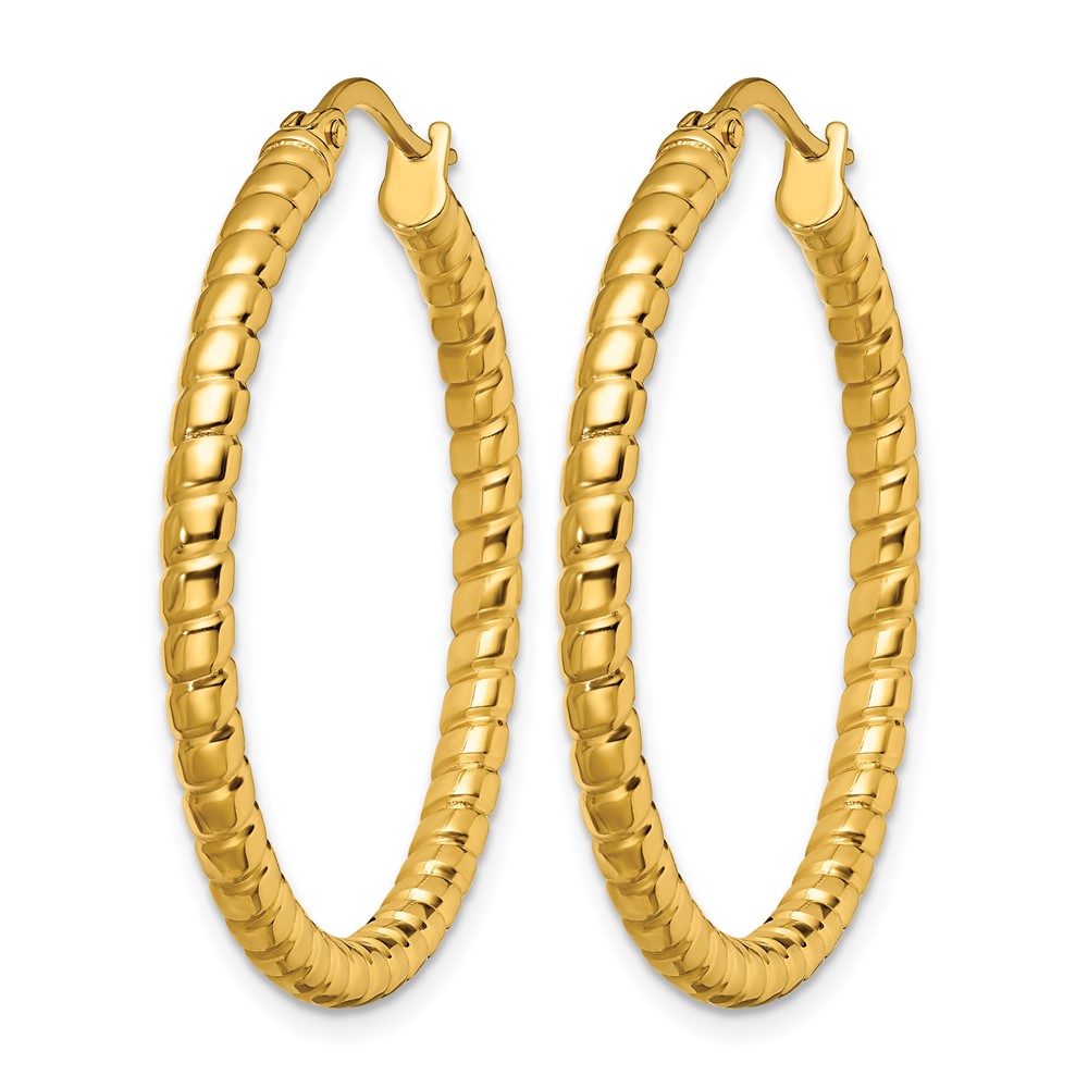Chisel Stainless Steel Polished and Textured Yellow IP-plated Hollow Hoop Earrings
