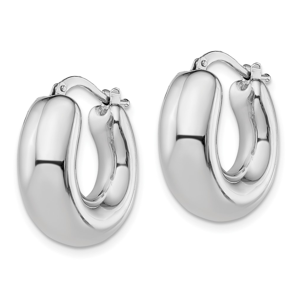 Sterling Silver RH-plated Polished Tapered Hollow Round Hoop Earrings