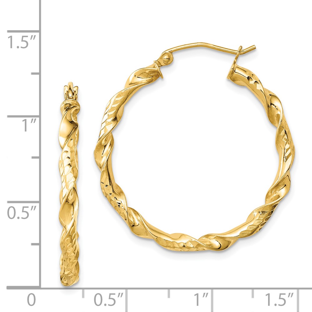 Sterling Silver Gold-plated 3x30mm Diamond-cut Twisted Hoop Earrings