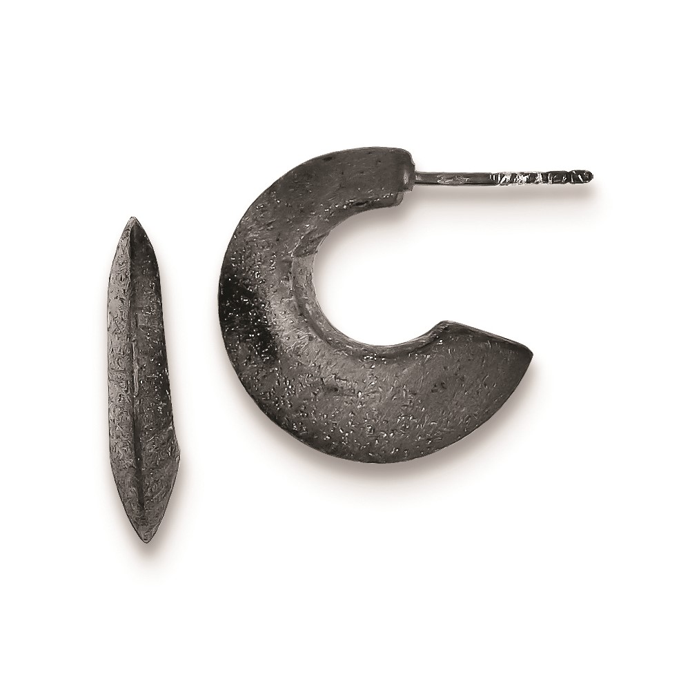 Sterling Silver Black Rhodium Satin Post Hoop Earrings
