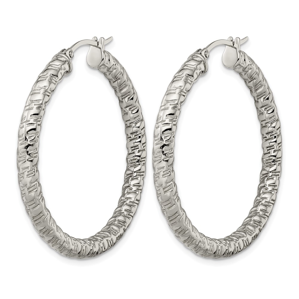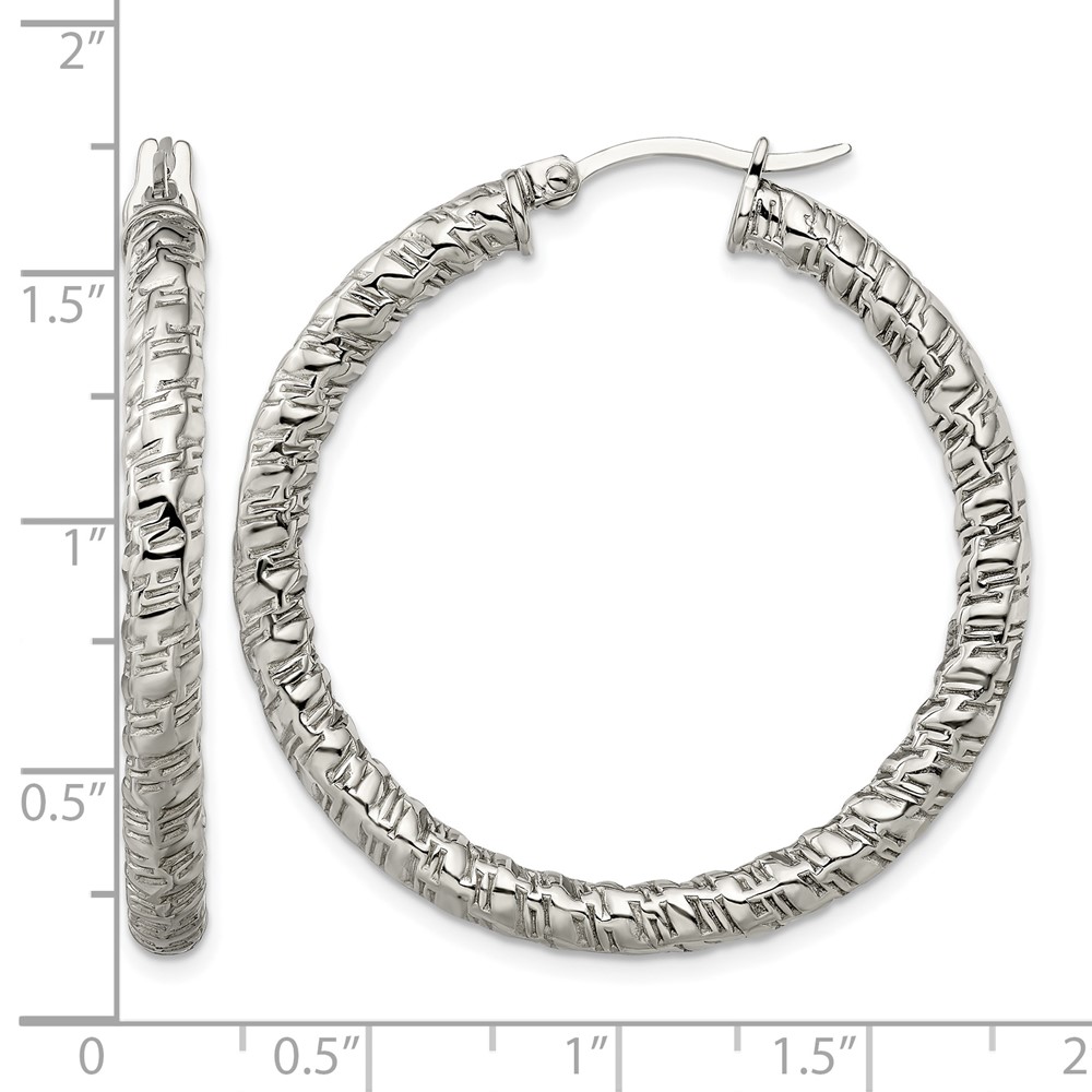 Chisel Stainless Steel Polished and Textured Hollow Hoop Earrings