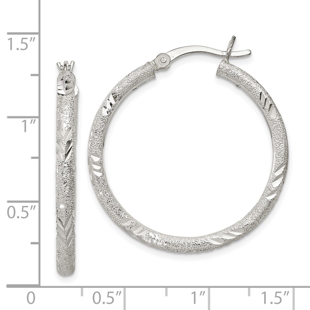 Sterling Silver Diamond-cut Tube Hoop Earrings
