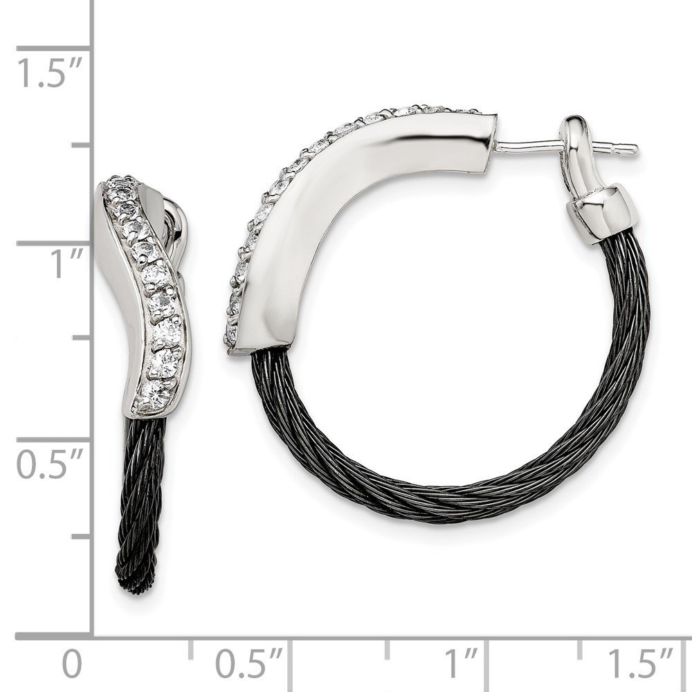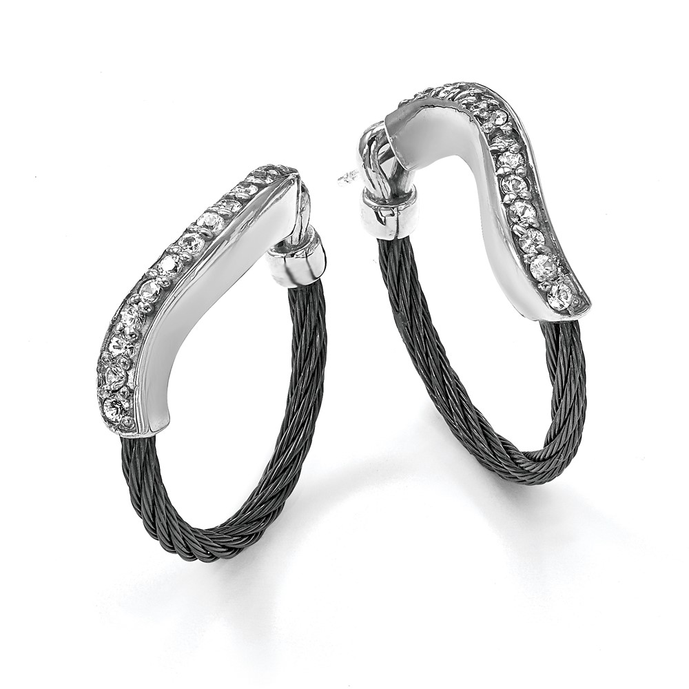 Edward Mirell Black Ti Memory Cable and Argentium Sterling Silver with White Sapphire Hoop Earrings