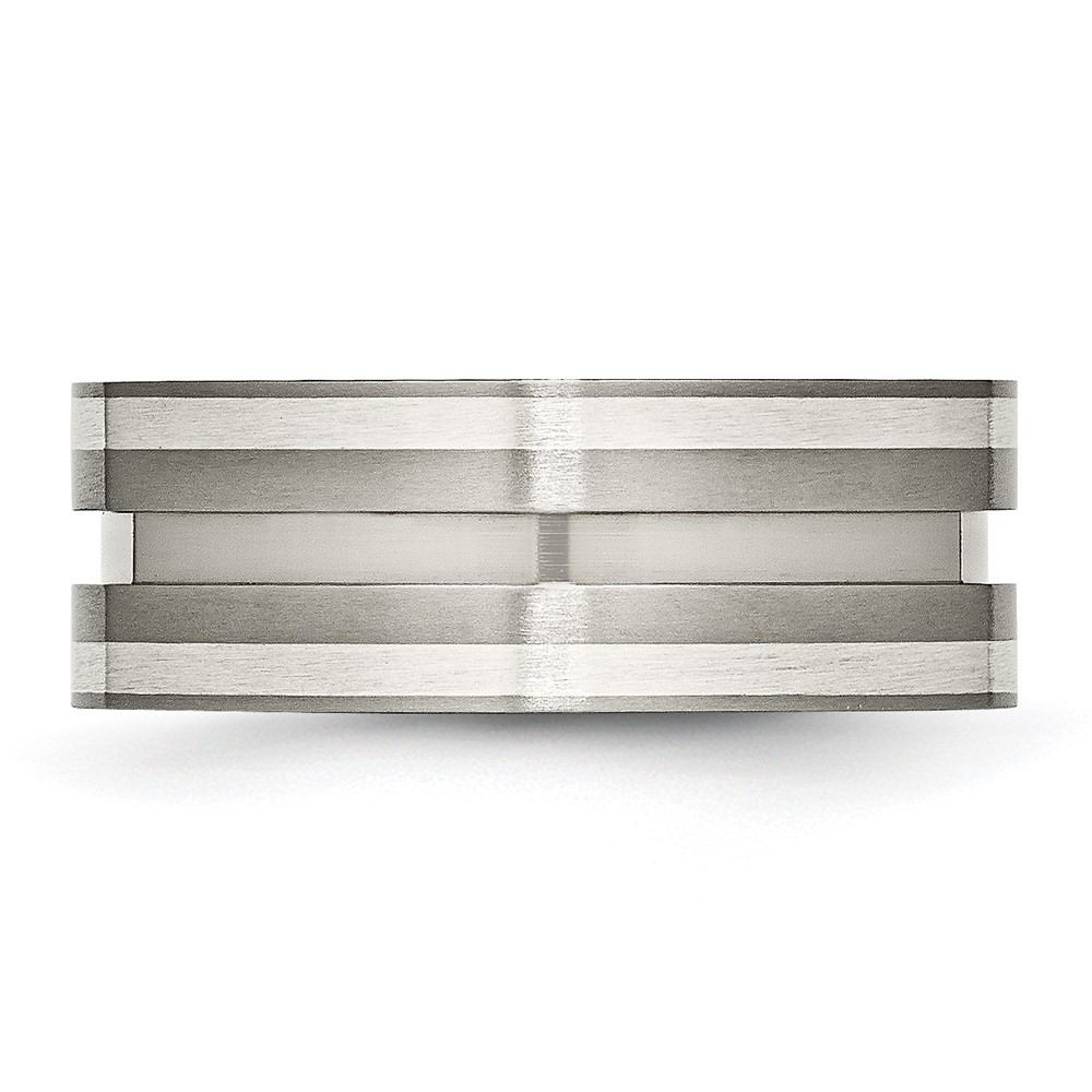 Titanium Brushed w/Sterling Silver Inlay 8mm Grooved Band