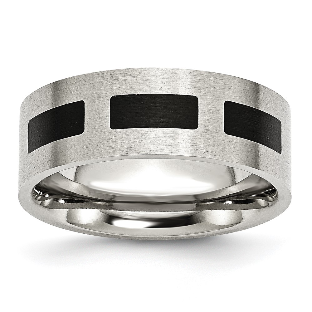 Stainless Steel Brushed w/Black Rubber 8mm Flat Band