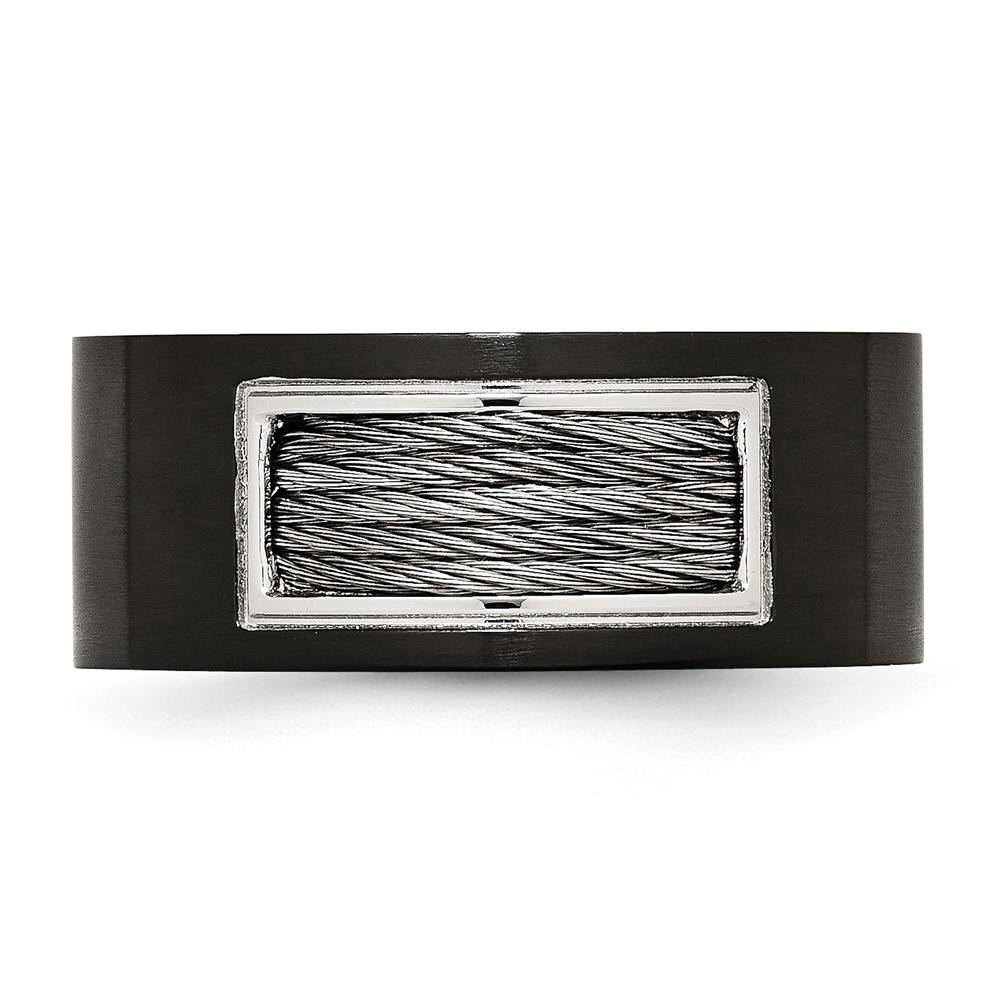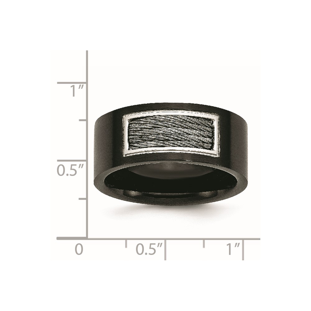 Stainless Steel Polished Black IP-plated w/Grey Wire Inlay 10mm Band