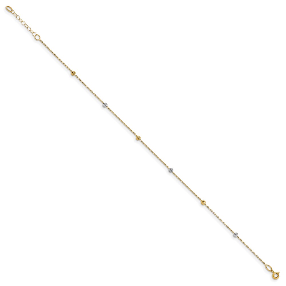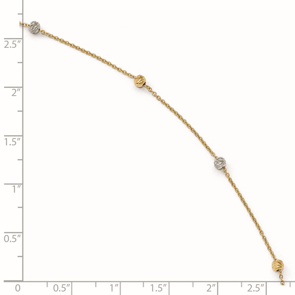 Leslie's 14K Two-Tone Diamond-cut Bead 6-Station 9 inch Plus 1 inch Extender - Total 10 inch Anklet
