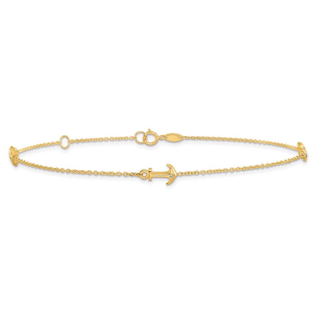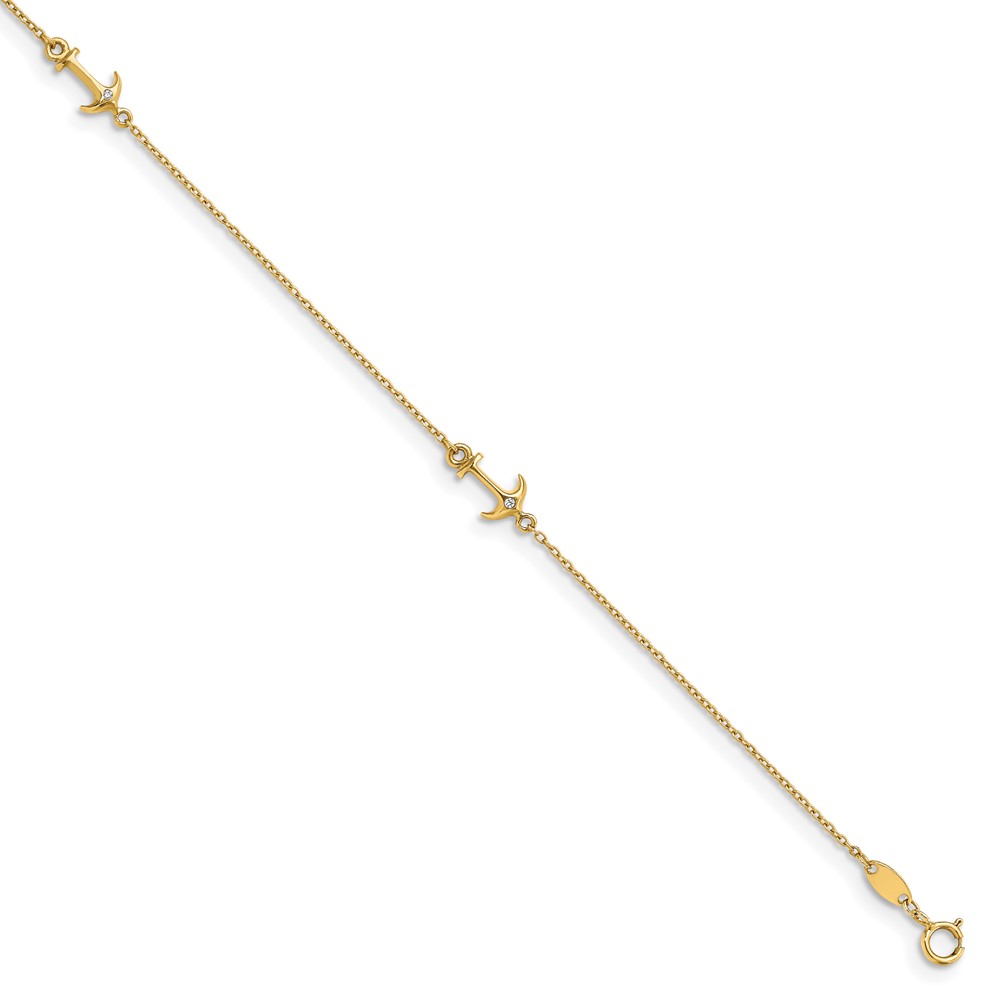 Leslie's 14K CZ Anchor 3-Station 9 inch Plus 1 inch Extender - Total 10 inch Anklet