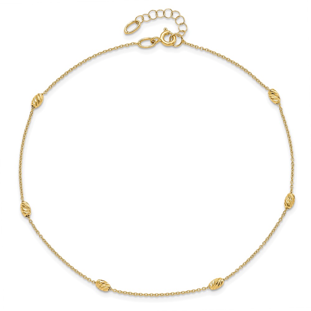 Leslie's 14K Diamond-cut Oval Beads 6-Station 10 inch Plus 1 inch Extender - Total 11 inch Anklet