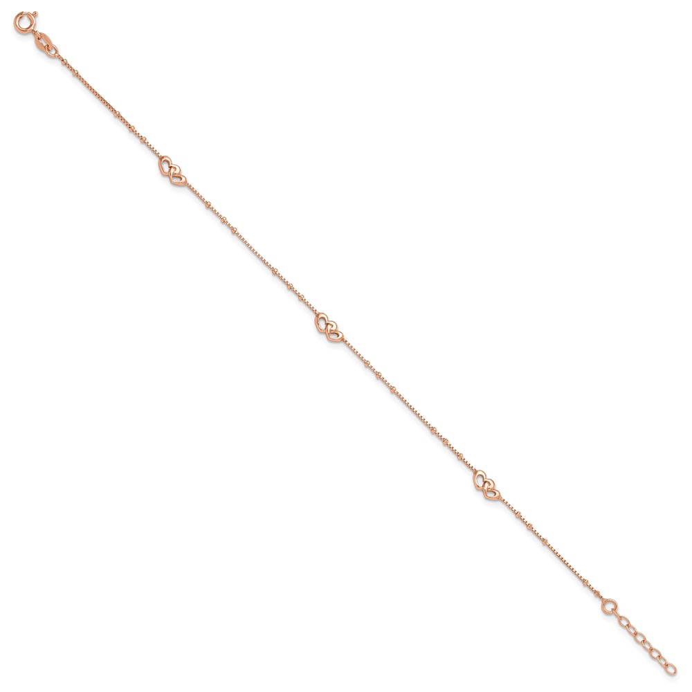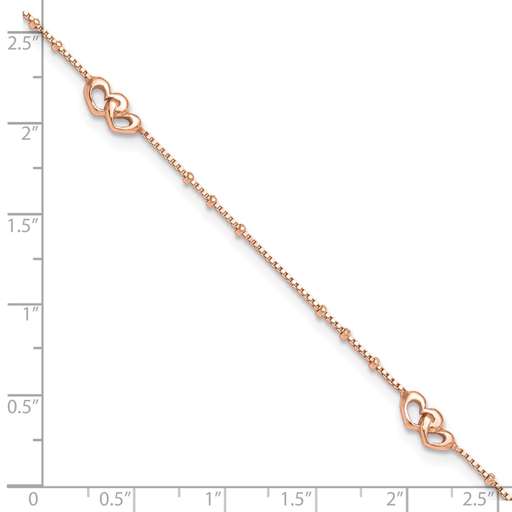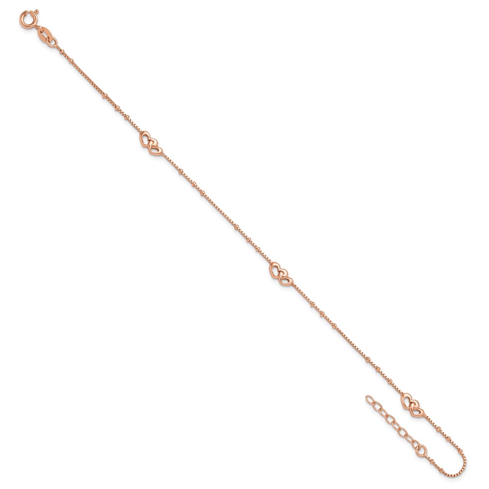 Sterling Silver Rose-tone Interlocked Hearts 9 inch Plus 1 inch Extender - Total 10 inch Anklet