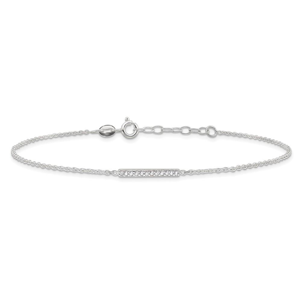 Sterling Silver CZ Bar 9 inch Plus 1 inch Extender - Total 10 inch Anklet