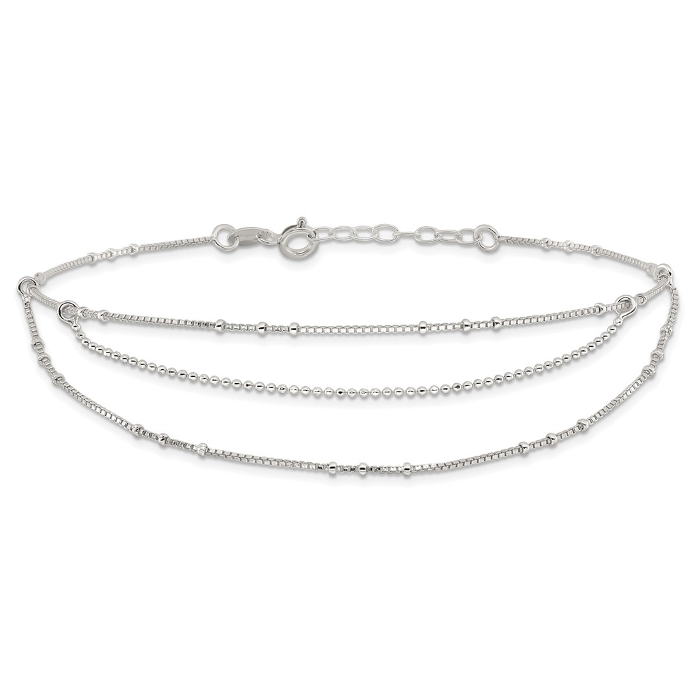 Sterling Silver Multi-Strand 9 inch Plus 1 inch Extender - Total 10 inch Anklet