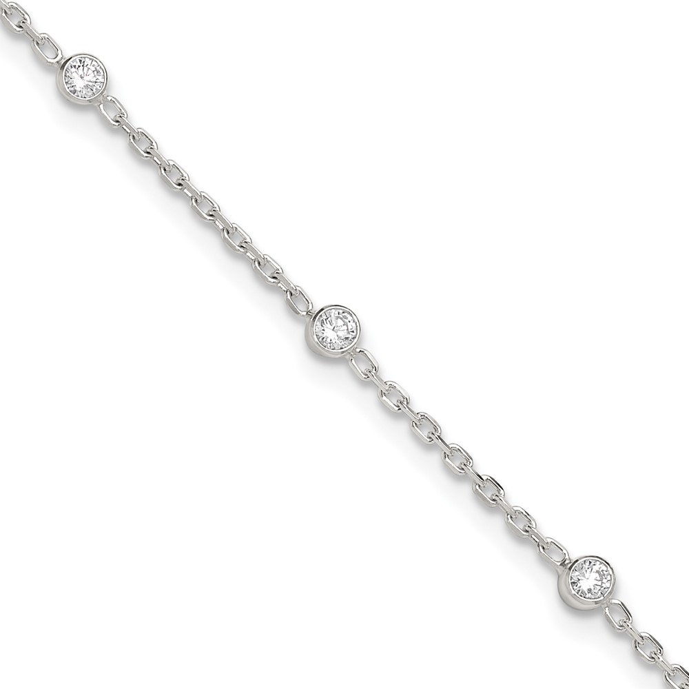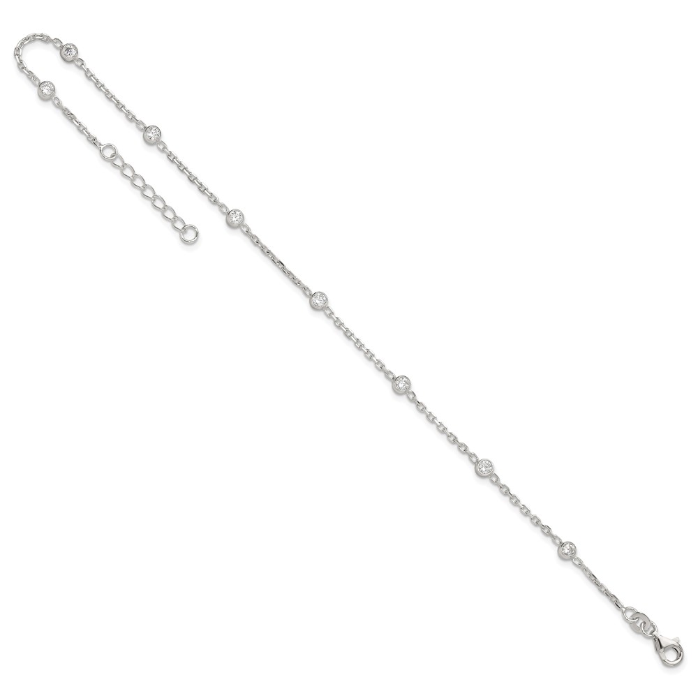 Sterling Silver Bezel CZ 8-Station 8.75 inch Plus 1 inch extender - Total 9.75 inch Anklet