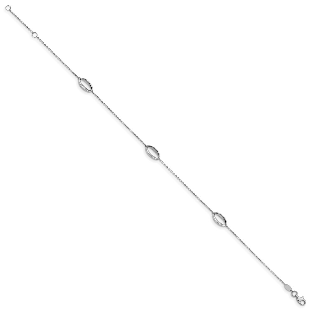 Leslie's 14K White Gold Ovals 3-Station 10 inch Plus 1 inch Extender - Total 11 inch Anklet