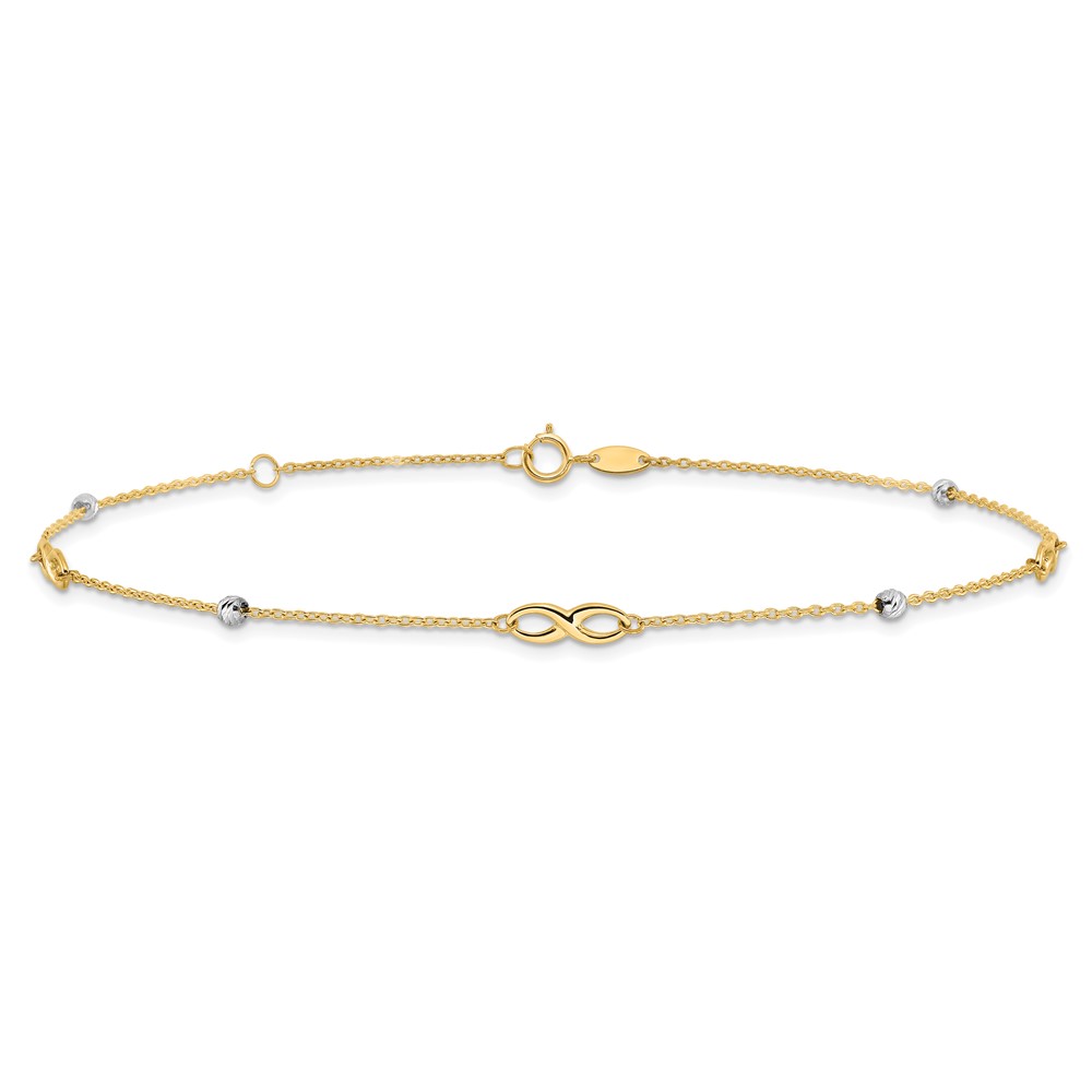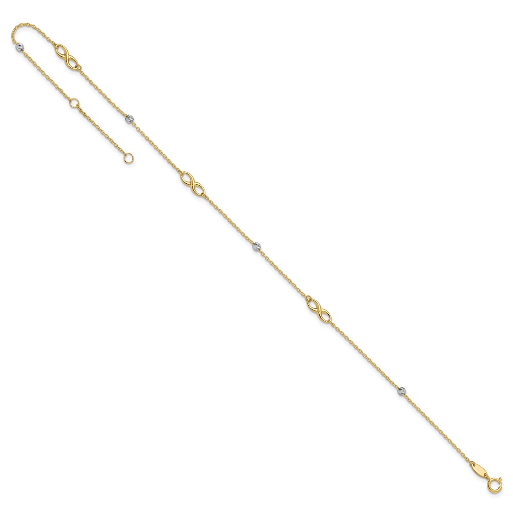 Sterling Silver Bead 7-Station 10 inch Plus 1 inch Extender - Total 11 inch Anklet