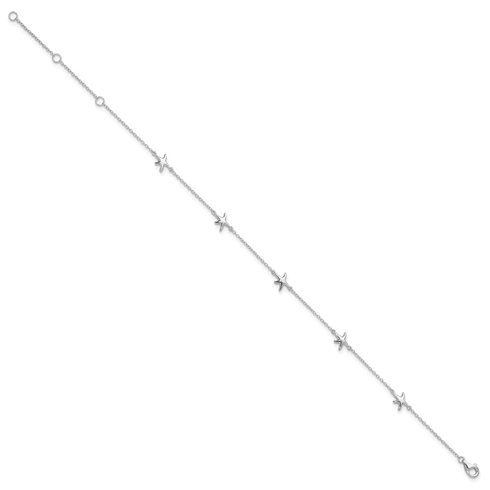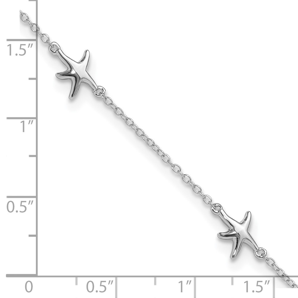 Sterling Silver Rhodium-plated Starfish 9 inch Plus 2 inch Extender - Total 11 inch Anklet