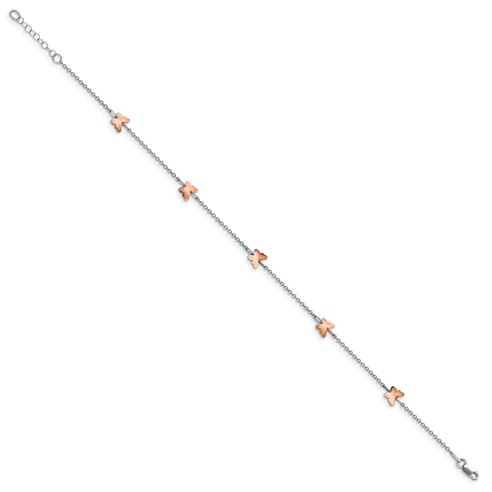 Leslie's 14K White and Rose Gold Polished Butterfly w/1in ext. Anklet