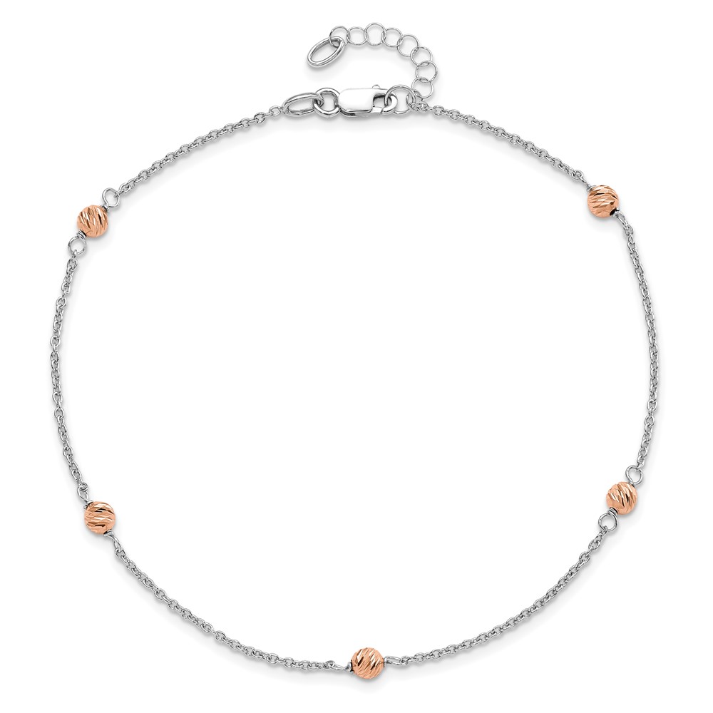 Leslie's 14K White and Rose Gold Polished D/C Beaded w/1in ext. Anklet