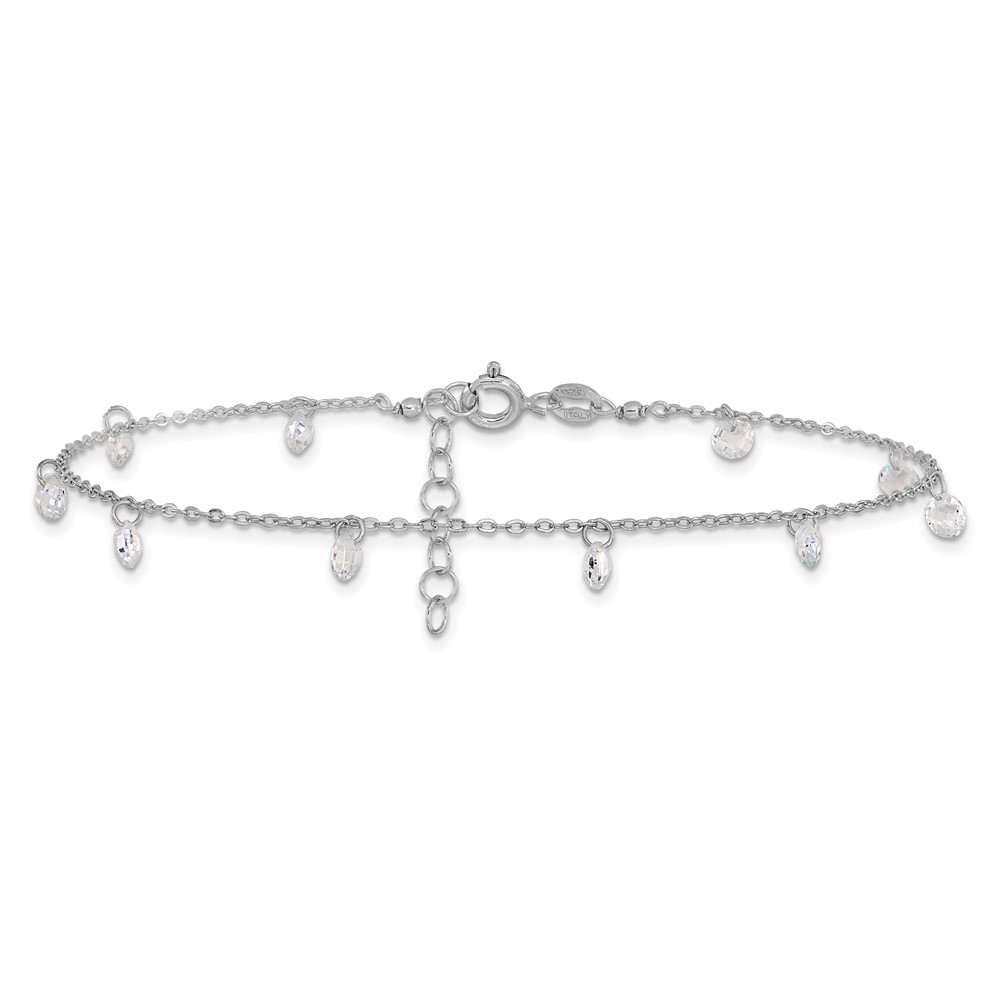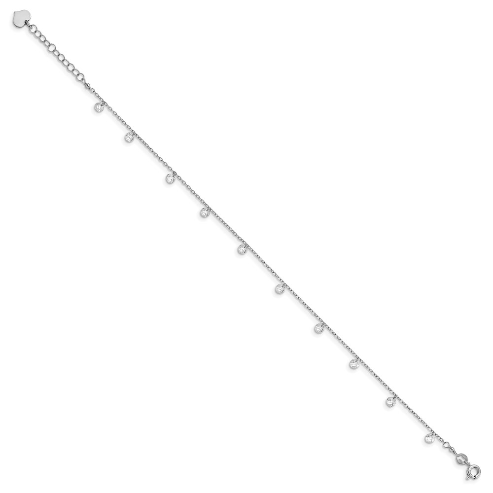 Leslie's Sterling Silver Rhodium-plated Crystal 9 inch Plus 1.25 inch Extender - Total 10.25 inch Anklet
