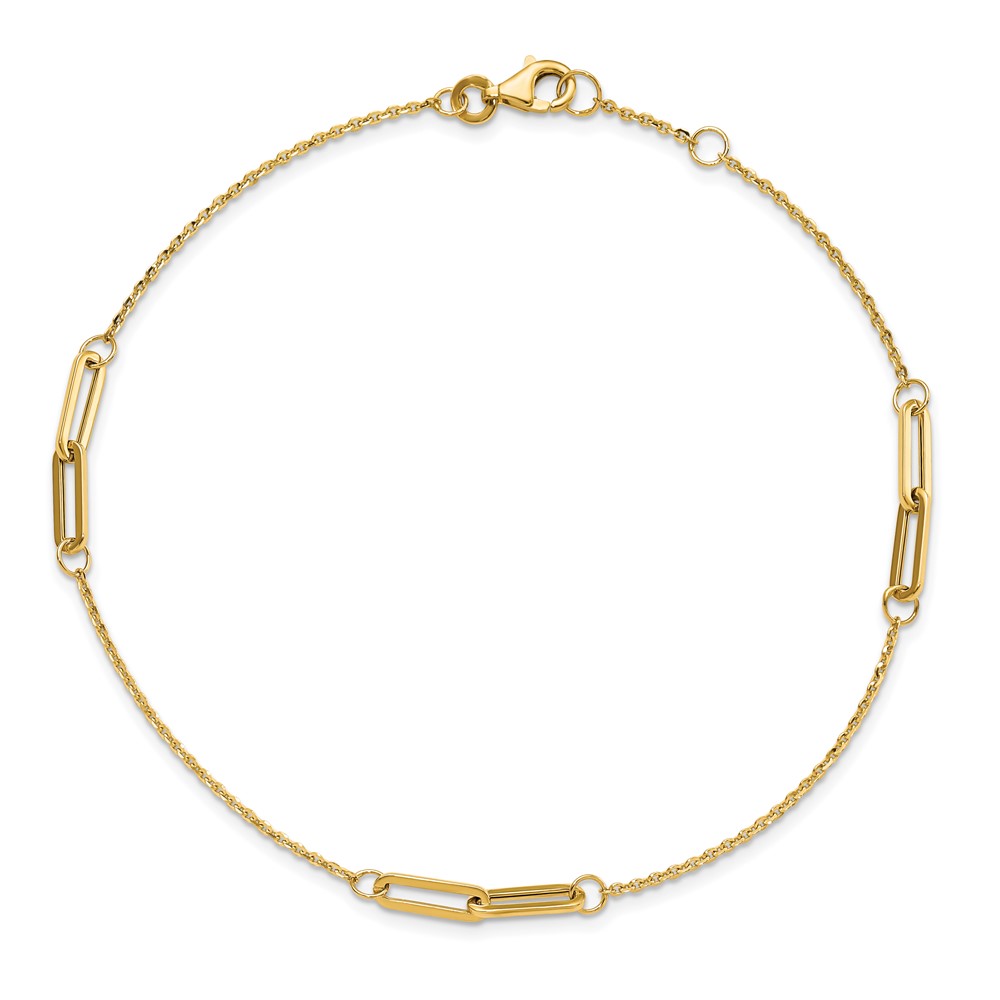 Leslie's 14K Paperclip Link 3-Station 9 inch Plus 0.5 inch Extender - Total 9.5 inch Anklet
