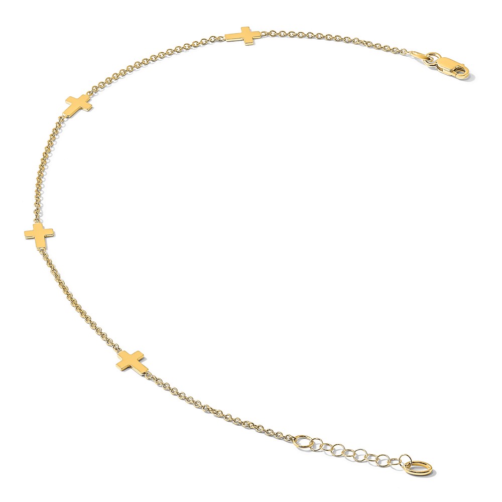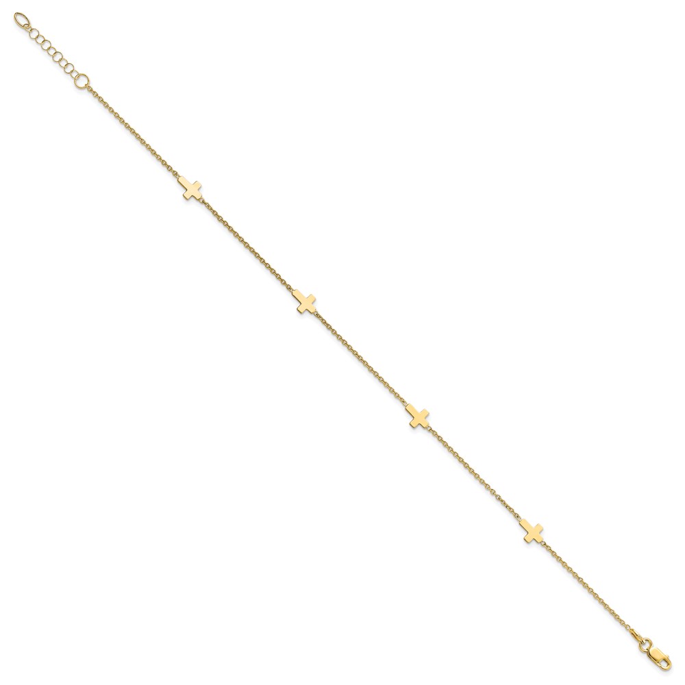Leslie's 14k Cross 4-Station 9 inch Plus 1 inch Extender - Total 10 inch Anklet