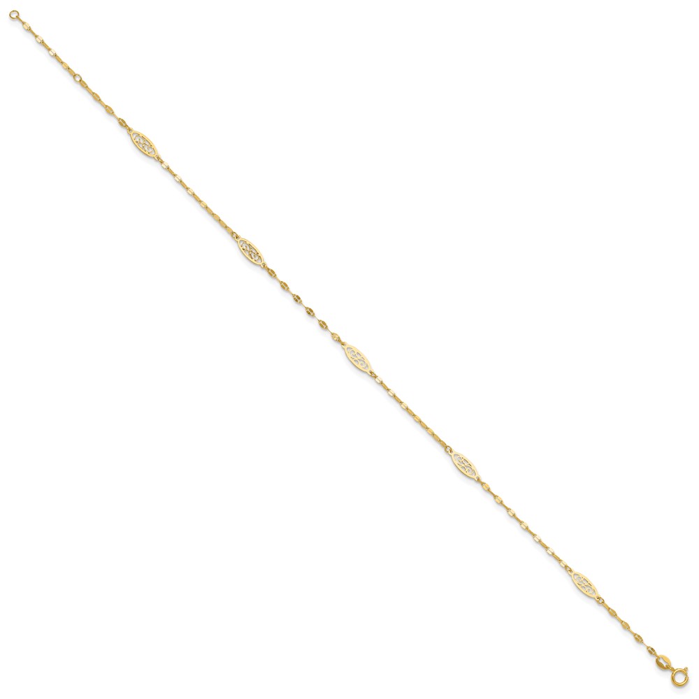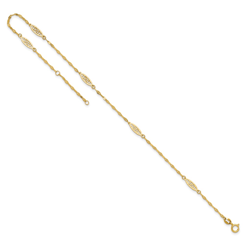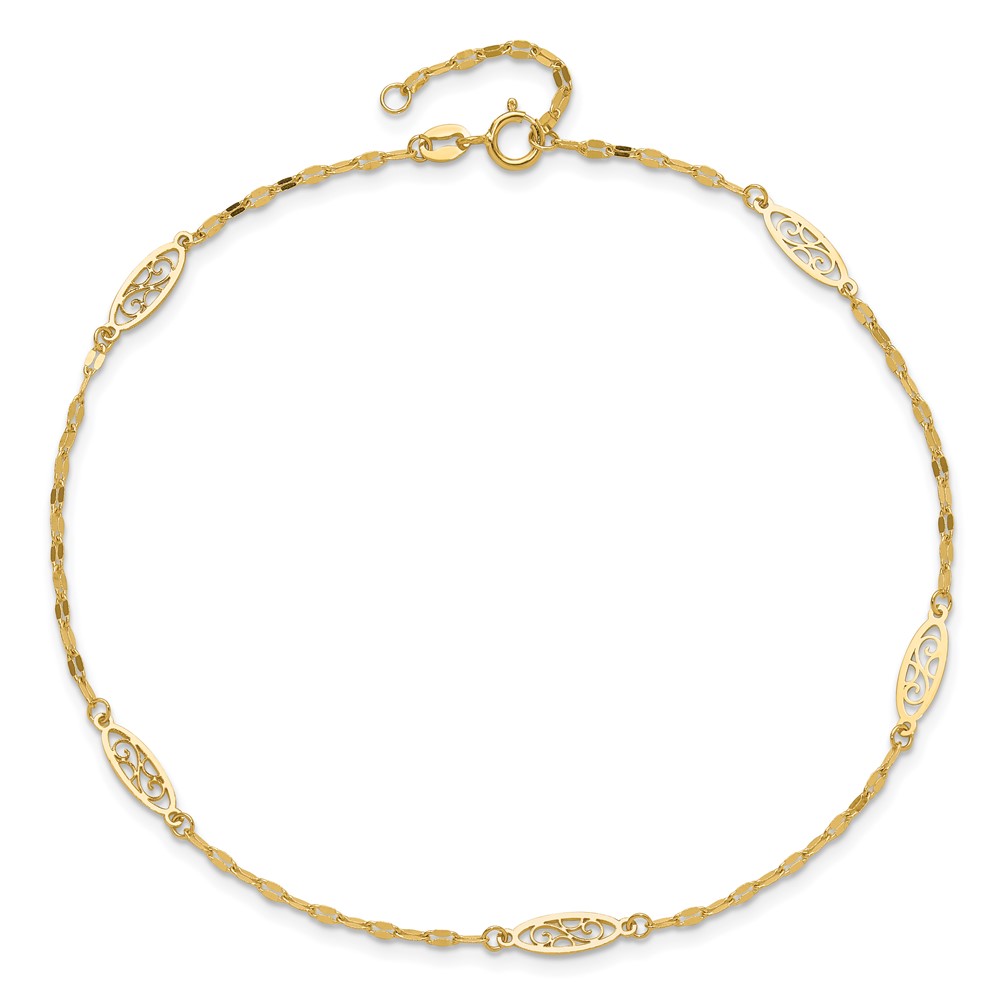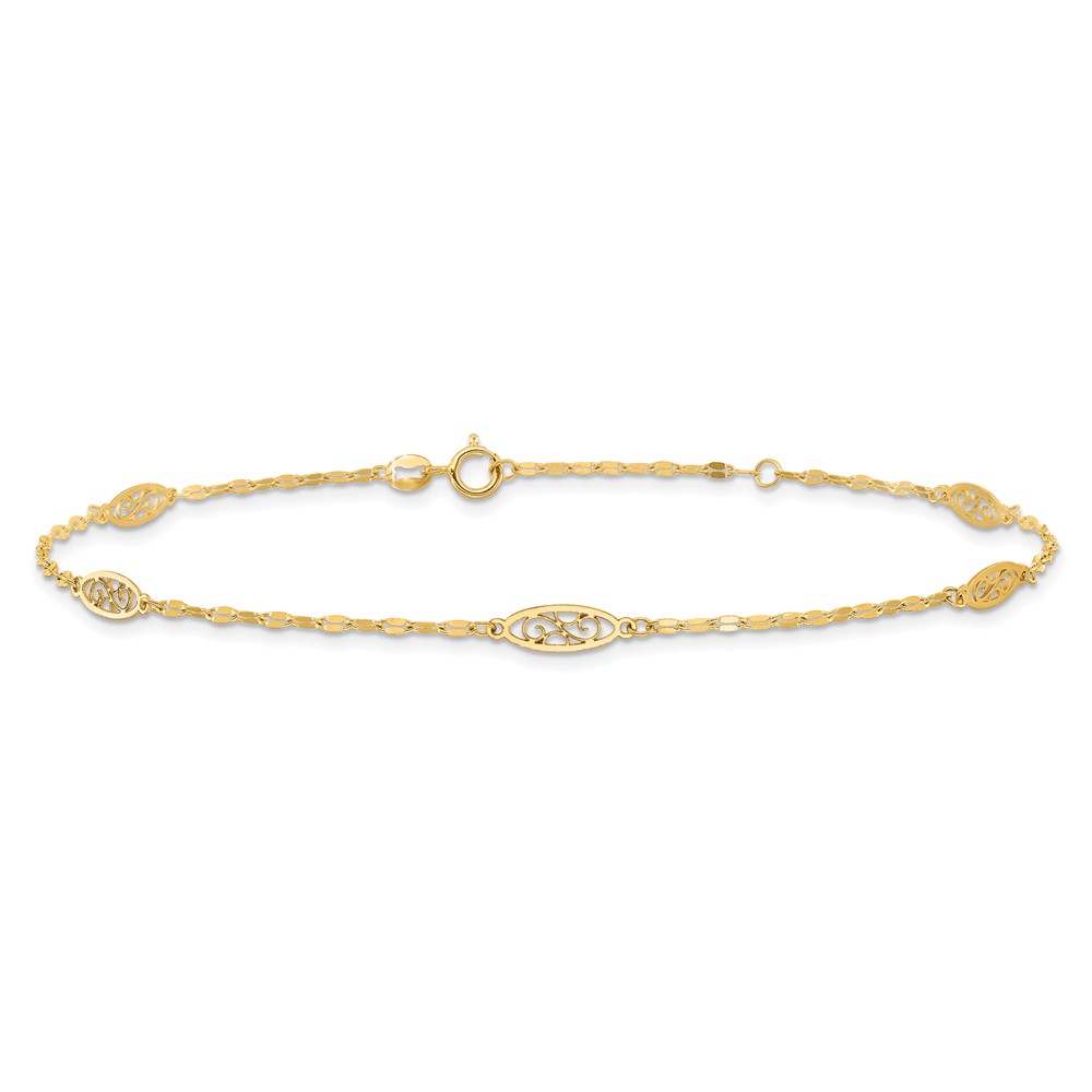14K Fancy Filigree Link 5-Station 9 inch Plus 1 inch Extender - Total 10 inch Anklet
