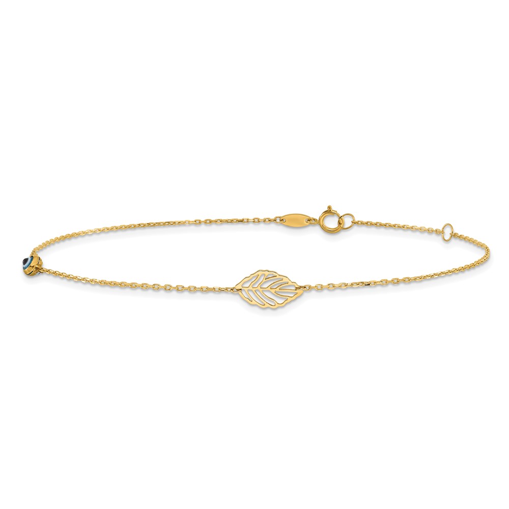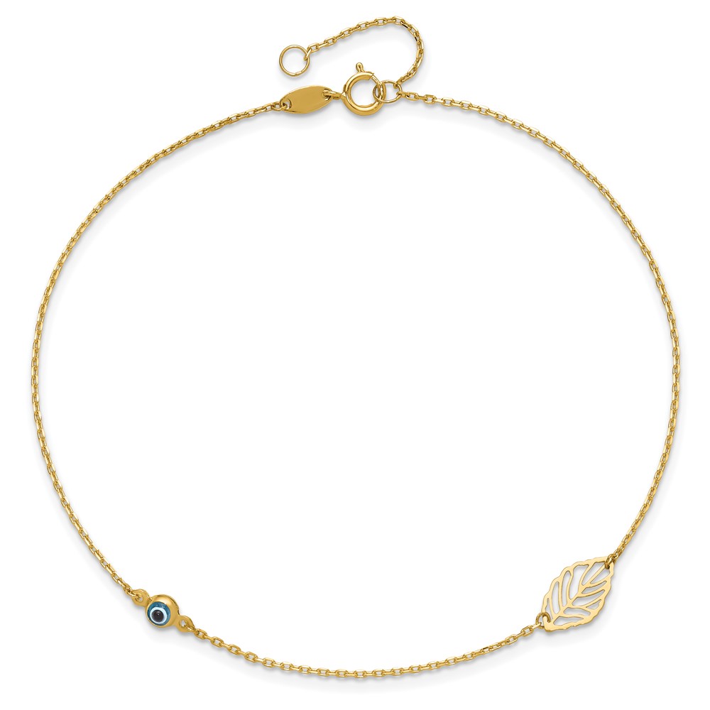 14k Leaf and Glass Eye Bead 9 inch Plus 1 inch Extender - Total 10 inch Anklet