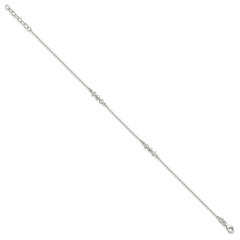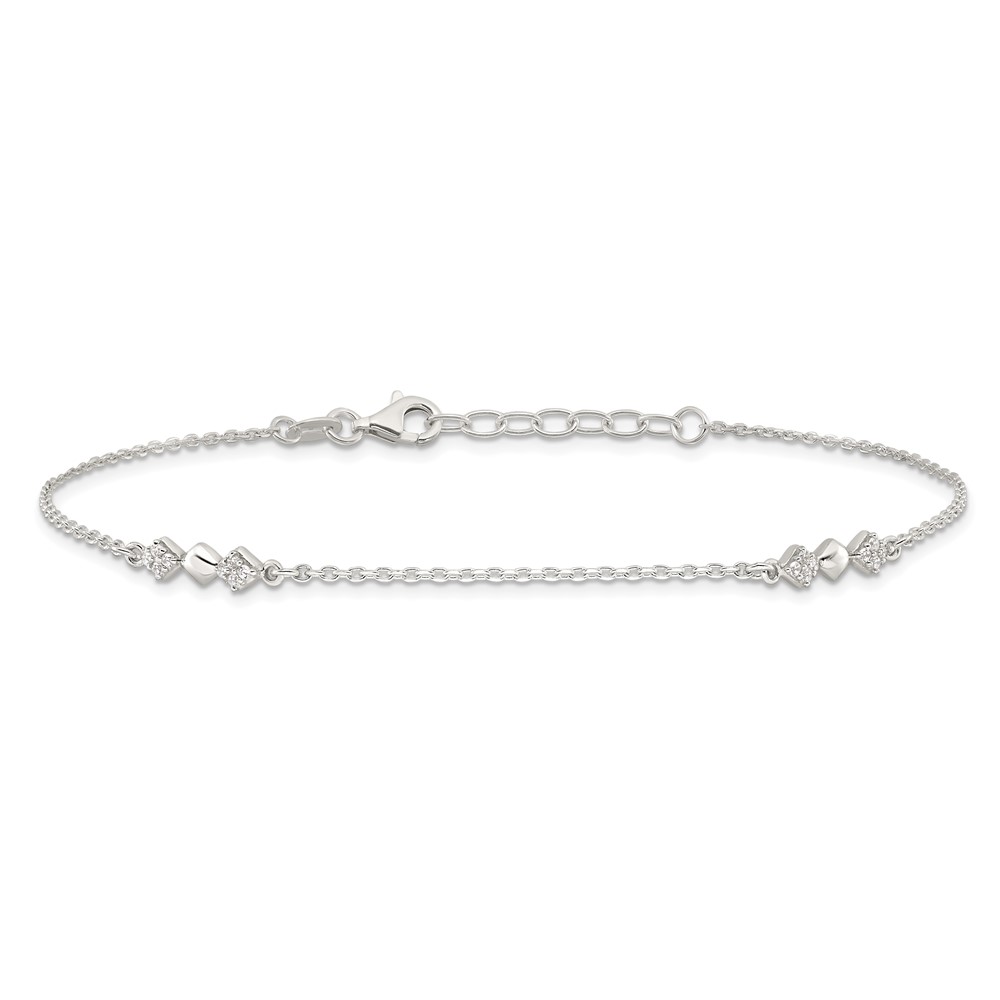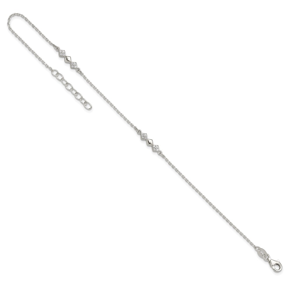 Sterling Silver CZ Shapes 9 inch Plus 1 inch Extender - Total 10 inch Anklet