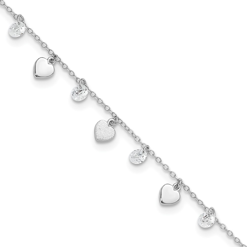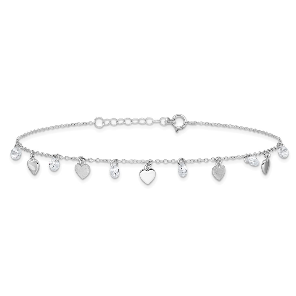 Sterling Silver Rhodium-plated Hearts and CZ 8.75 inch Plus 1 inch Extender - Total 9.75 inch Anklet