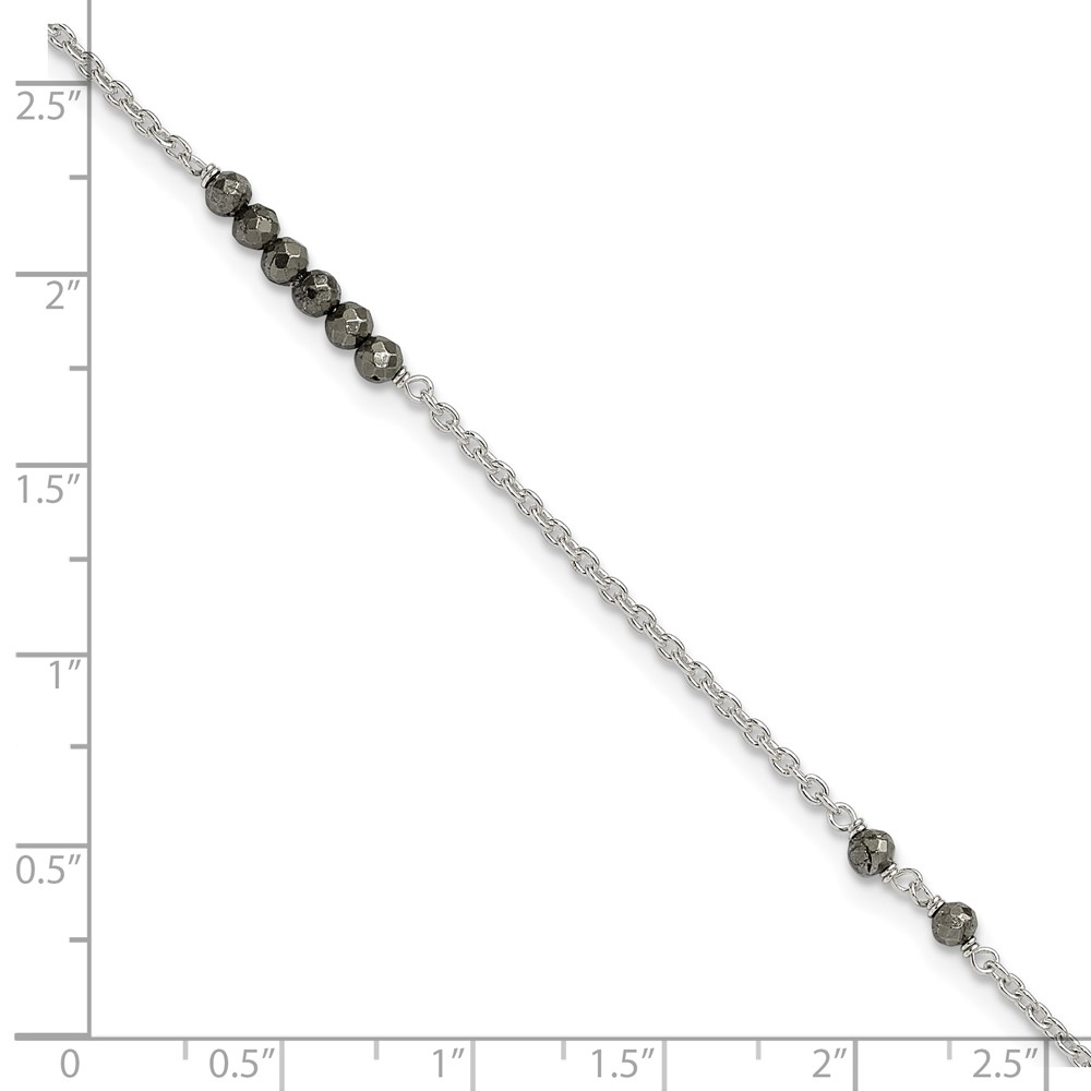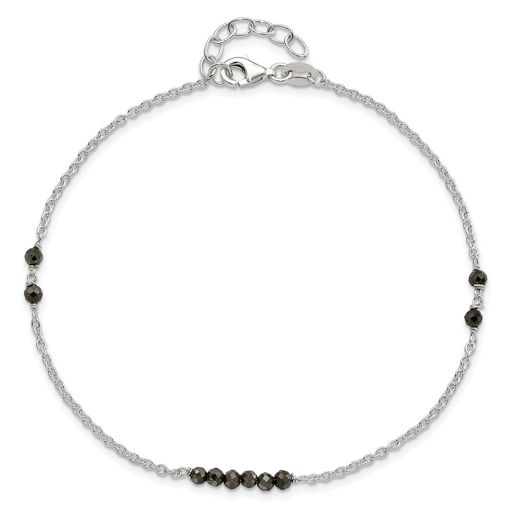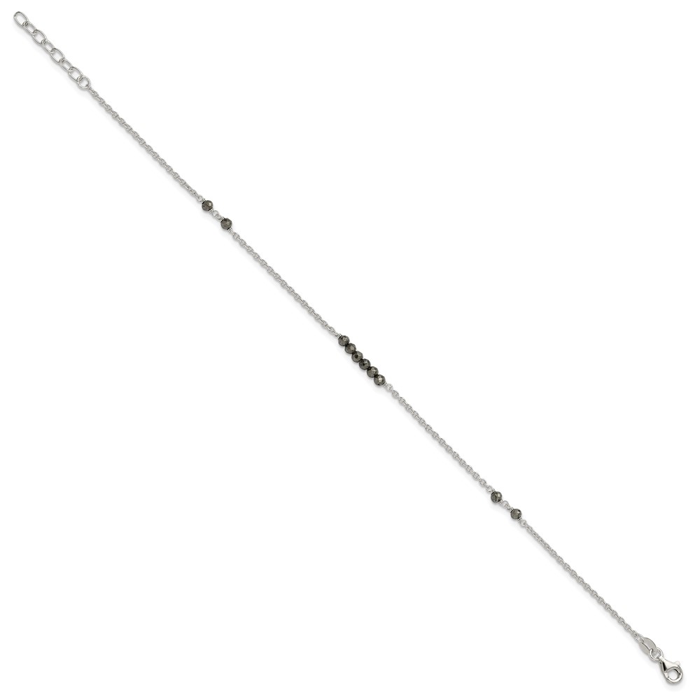 Sterling Silver Black CZ Beads 9 inch Plus 1 inch Extender - Total 10 inch Anklet