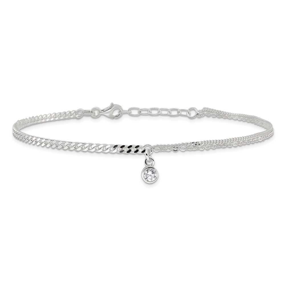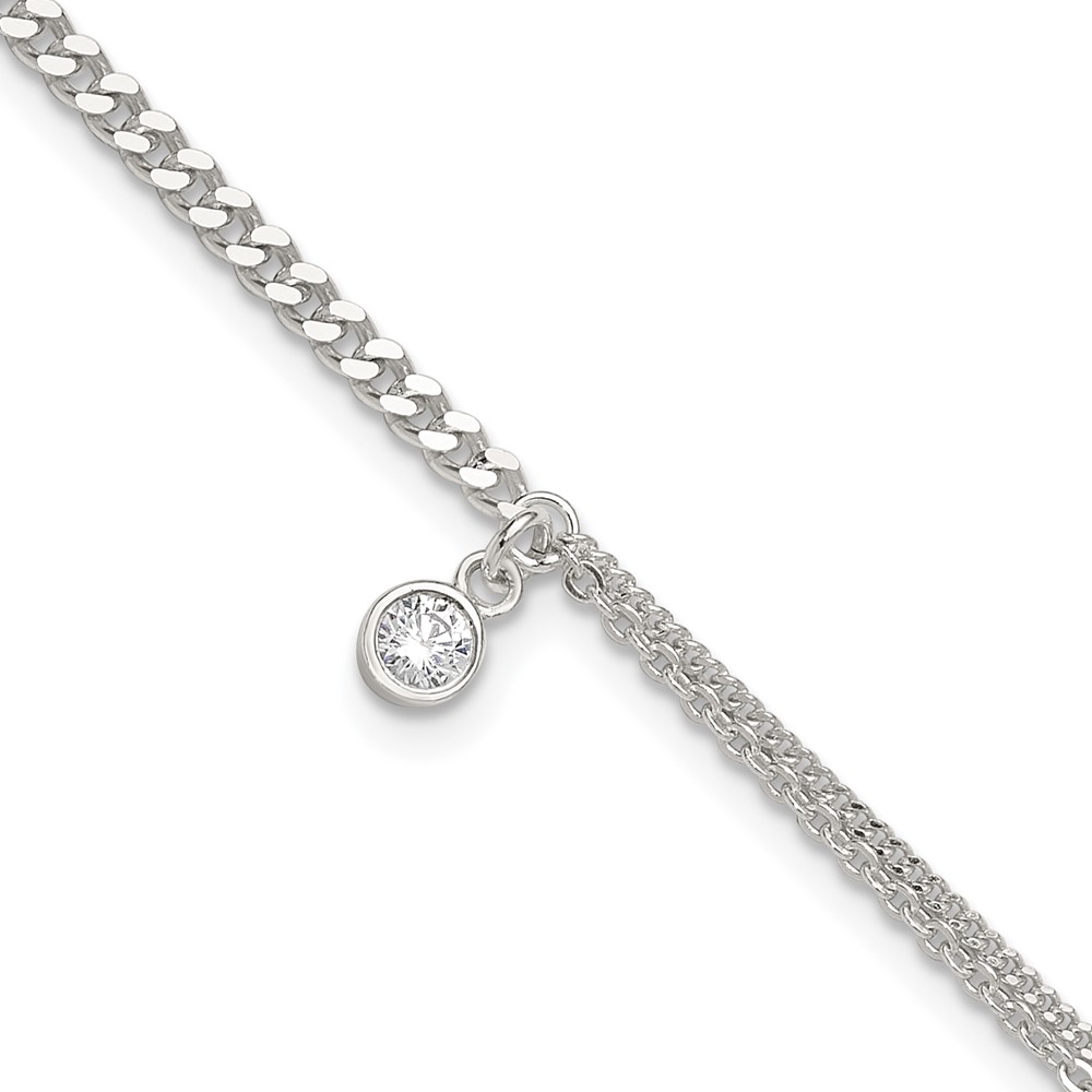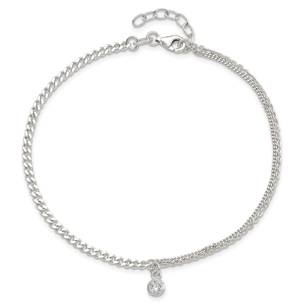 Sterling Silver CZ Fancy Chain 9 inch Plus 1 inch Extender - Total 10 inch Anklet