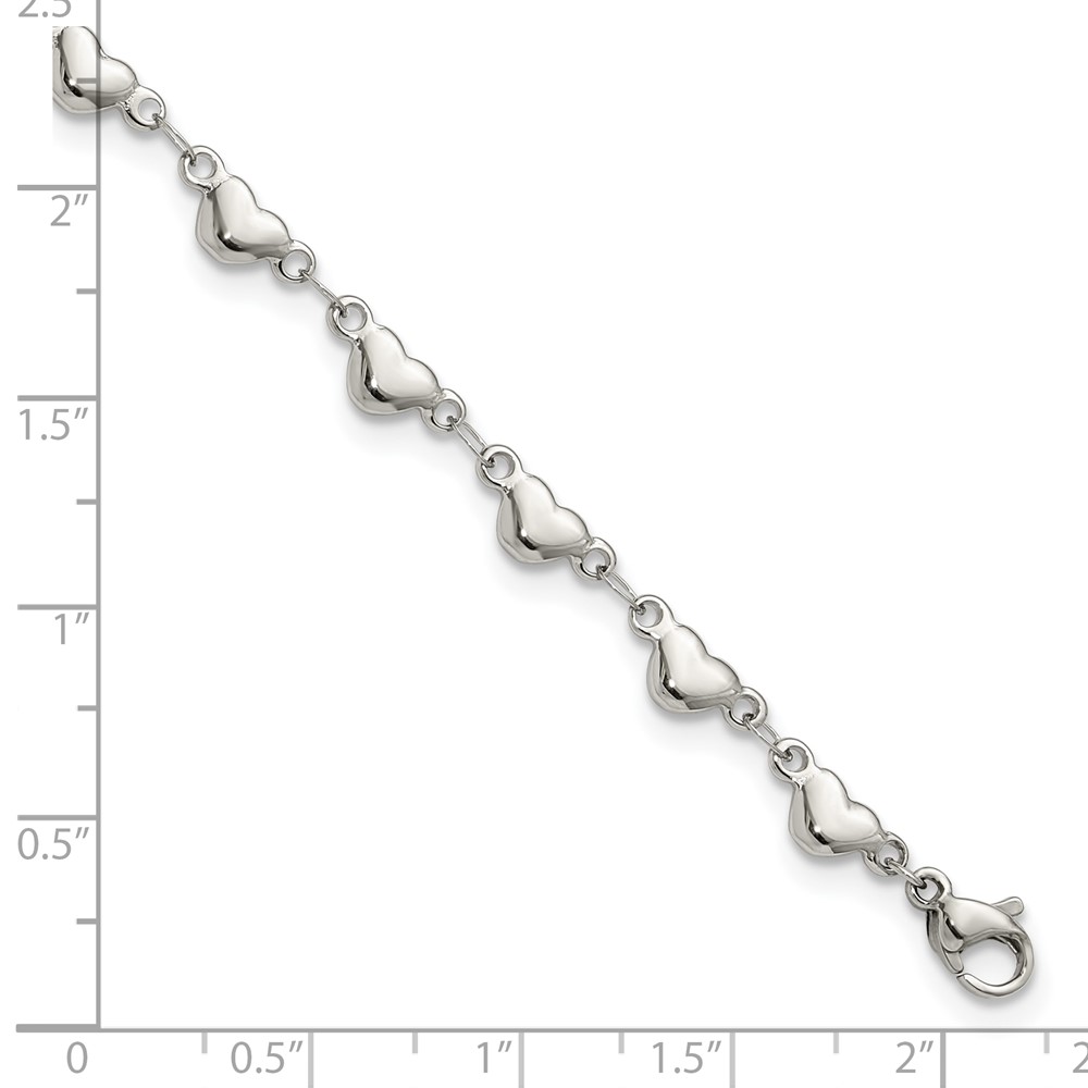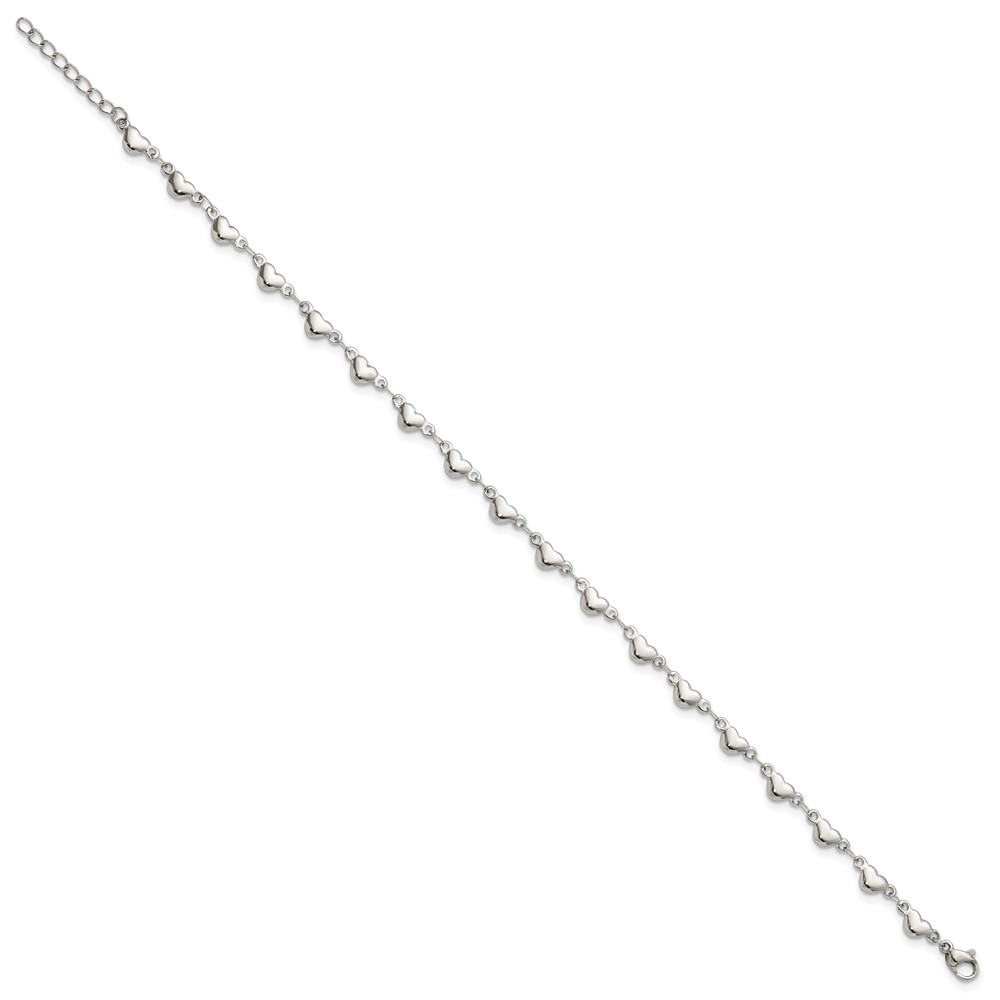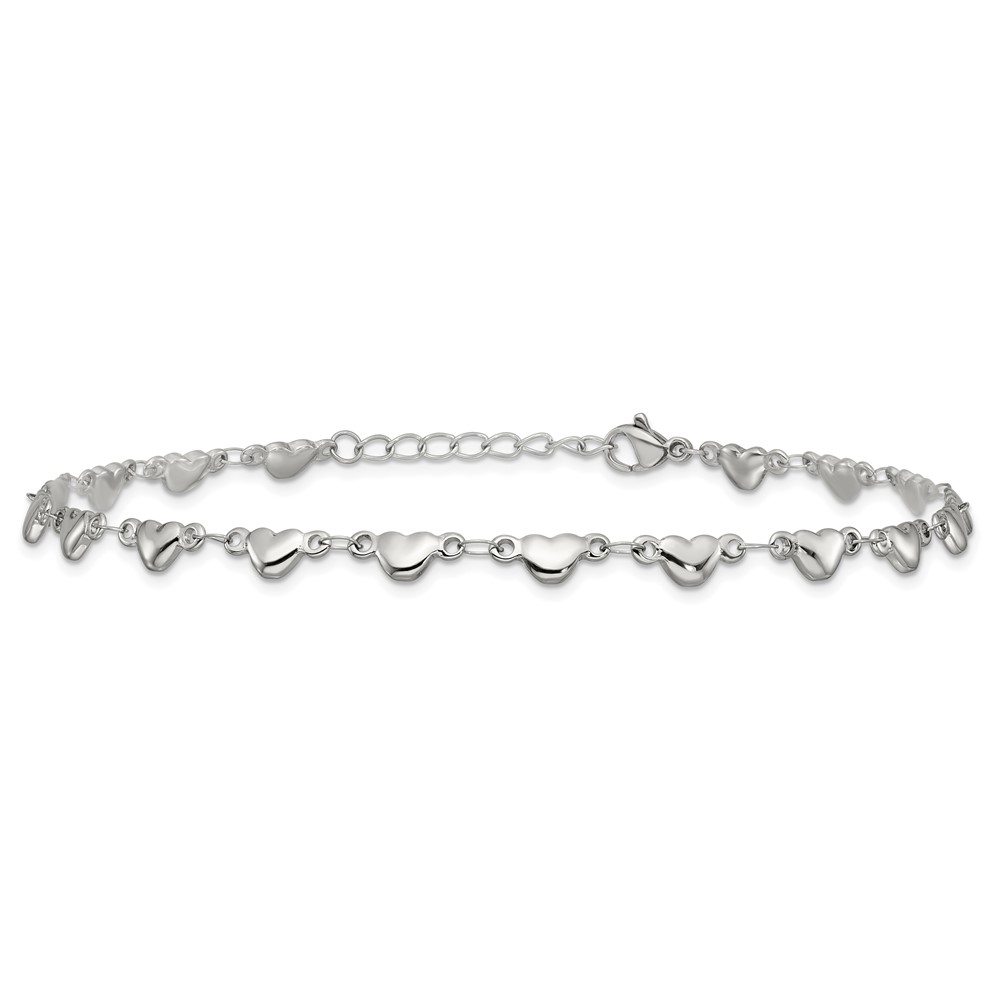 Chisel Stainless Steel Polished Hearts 9 inch Anklet Plus 1 inch Extension
